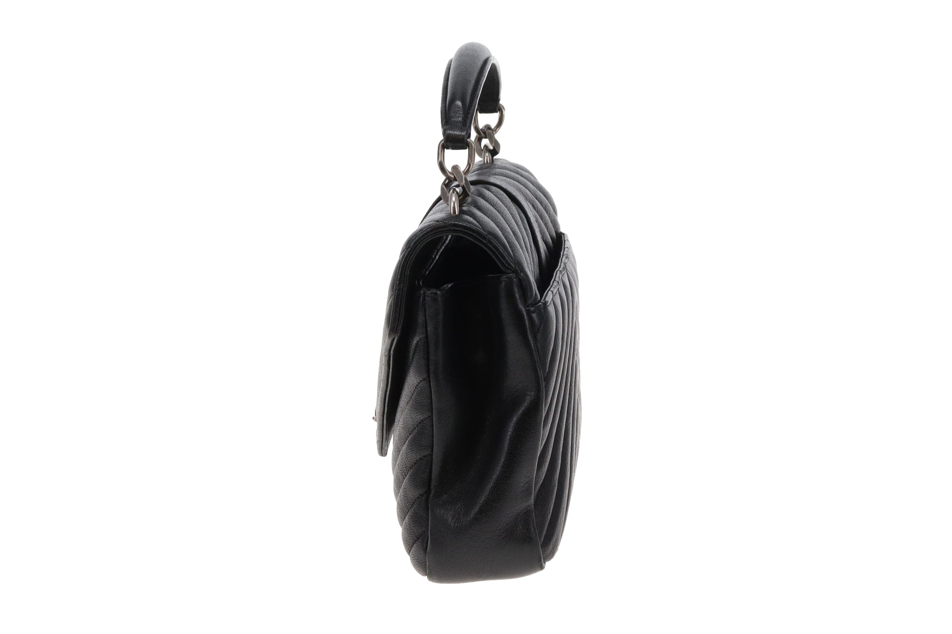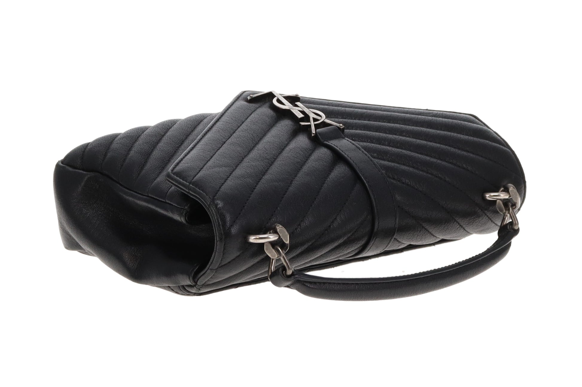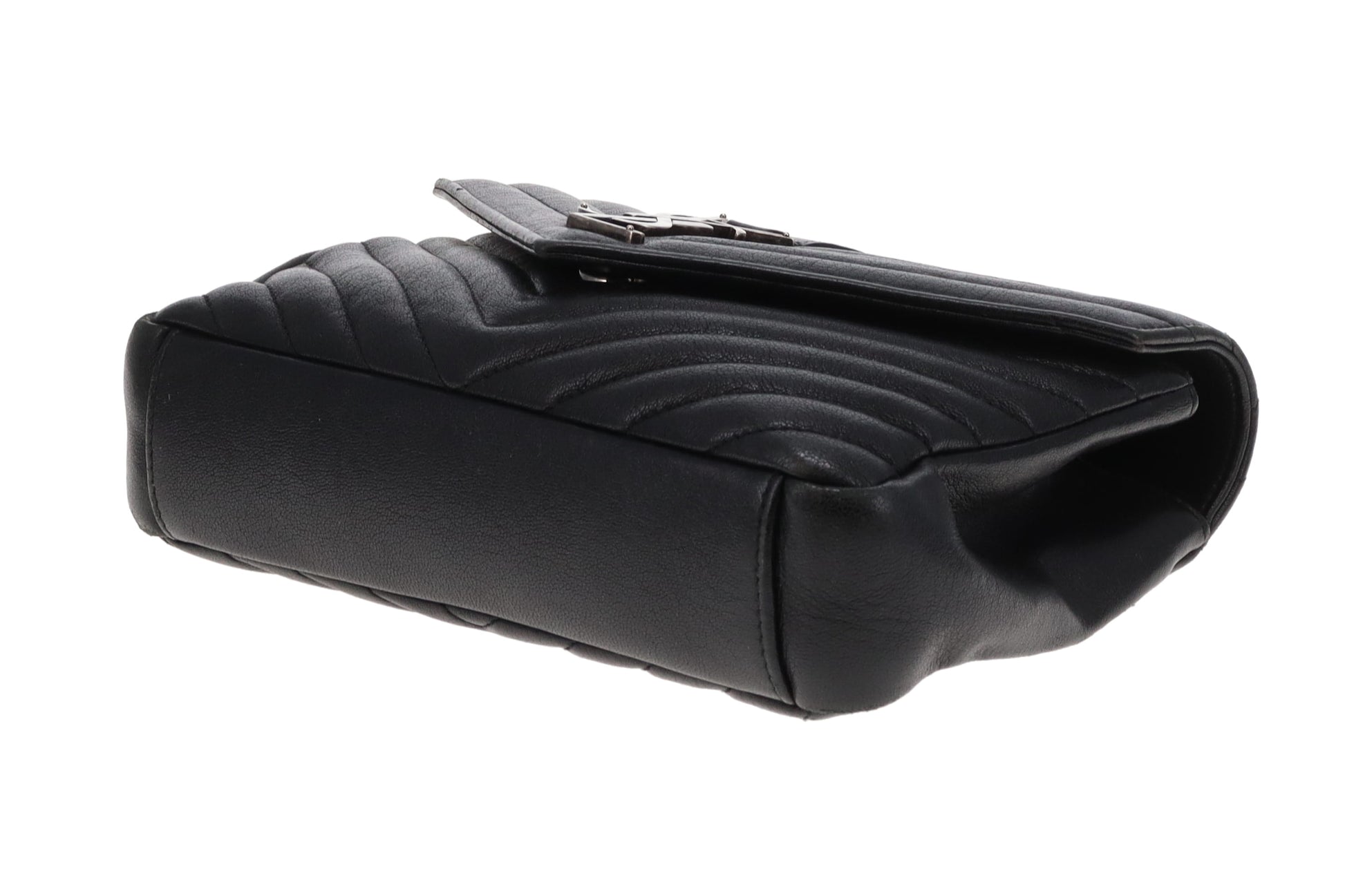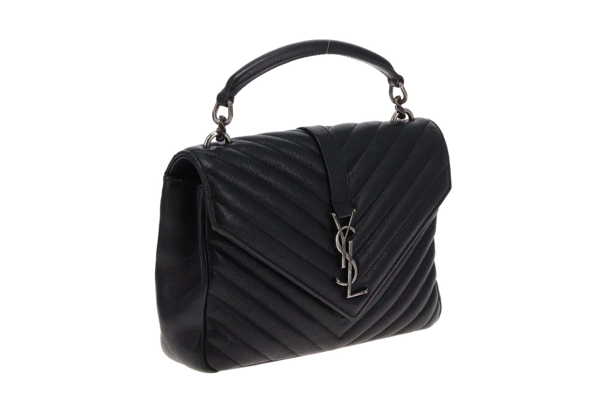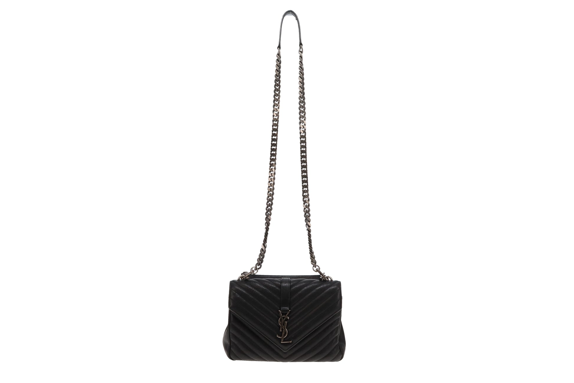 Saint Laurent College Bag Medium Black Chevron Leather 2017
