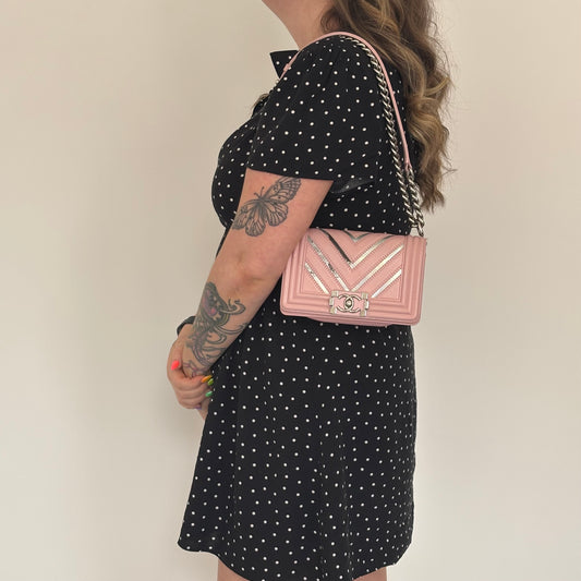 Chanel Boy Bag Small Pink and Iridescent Chevron 2016/17