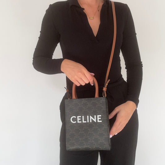 Celine Vertical Cabas Tote Mini Triomphe Canvas