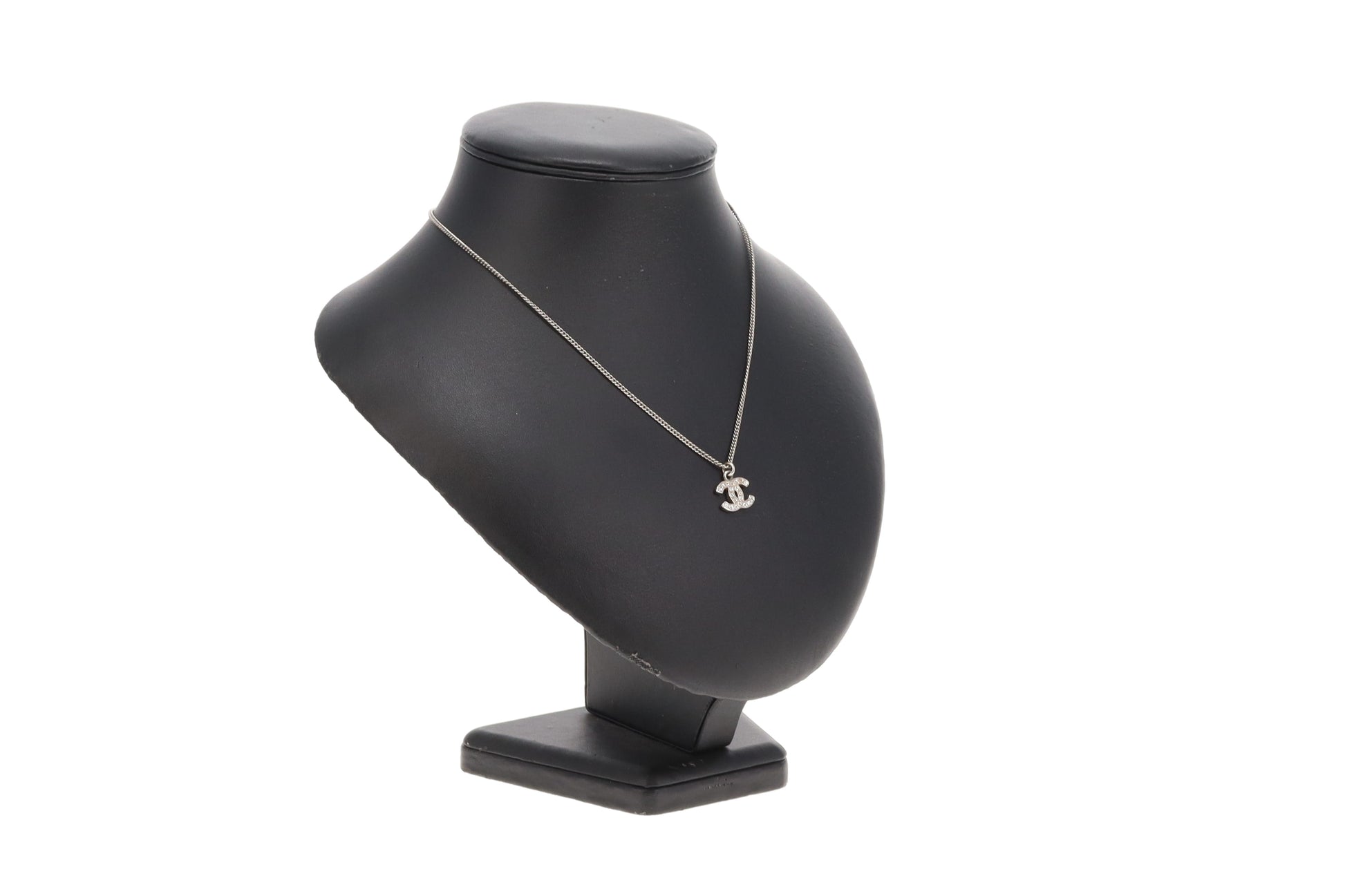 Chanel CC Strass Silvertone Small Pendant Necklace 2009