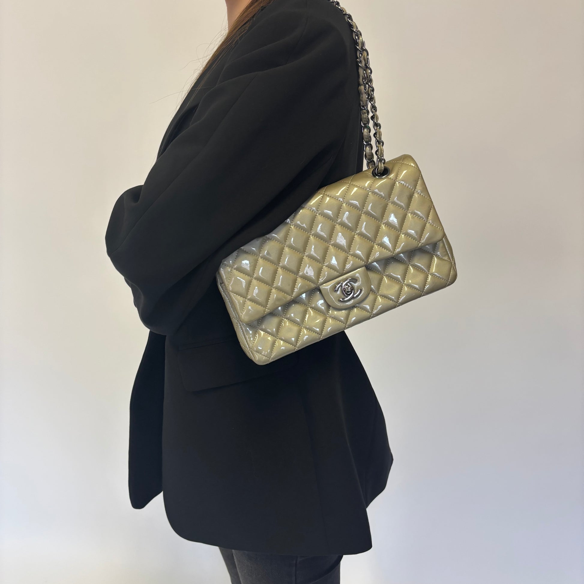 Chanel Classic Medium Double Flap Metallic Sage Green Patent GMH 2012/13