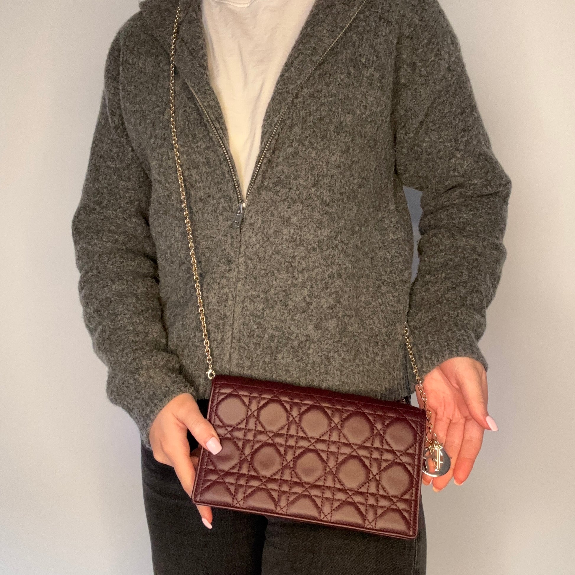 Dior Lady Dior Wallet on Chain Burgundy GHW 2013