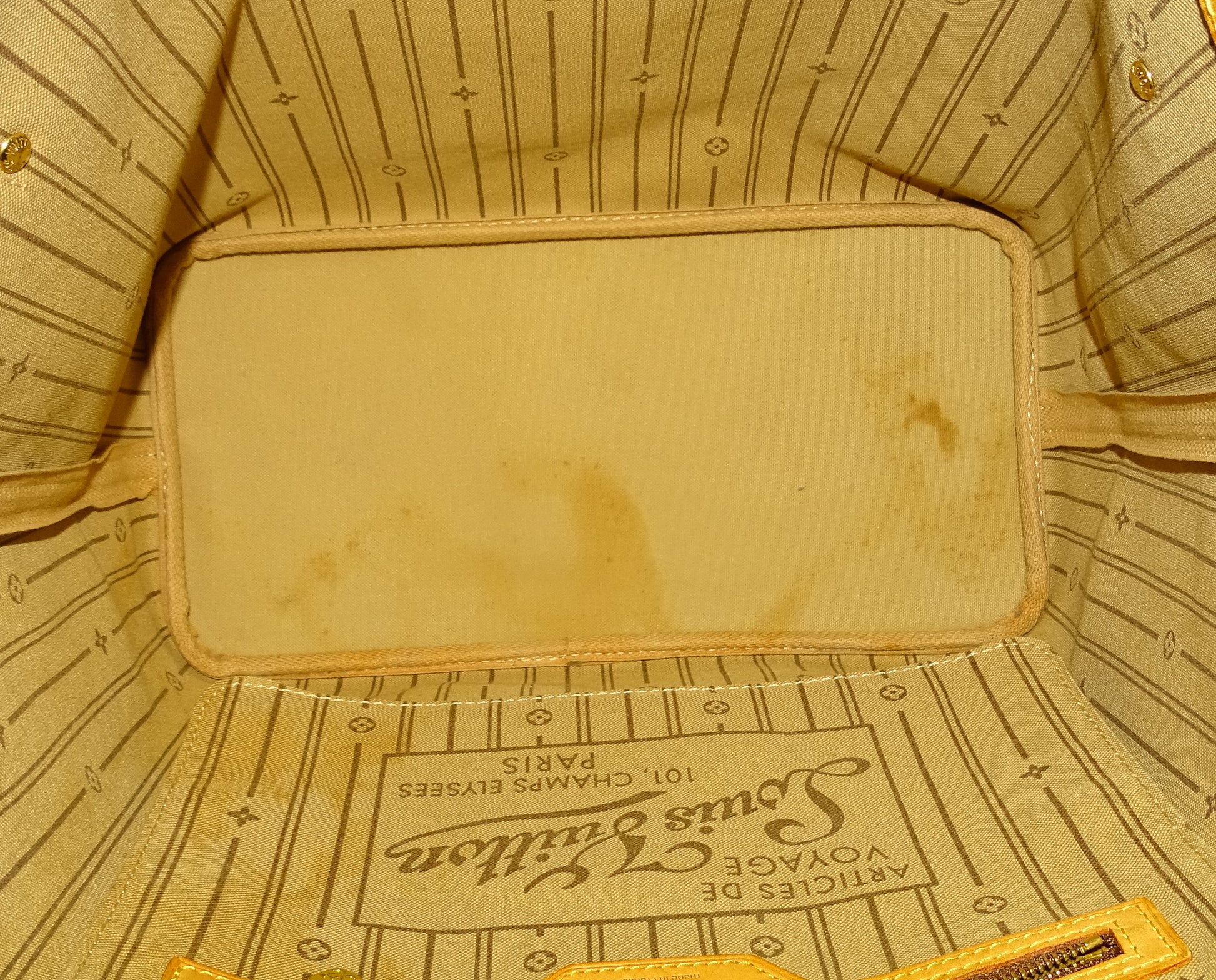 - Condition Notes: Scratching to the hardware, marks/darkening to the vachetta, wear to the handles, marks/stains on the interior, storage scent