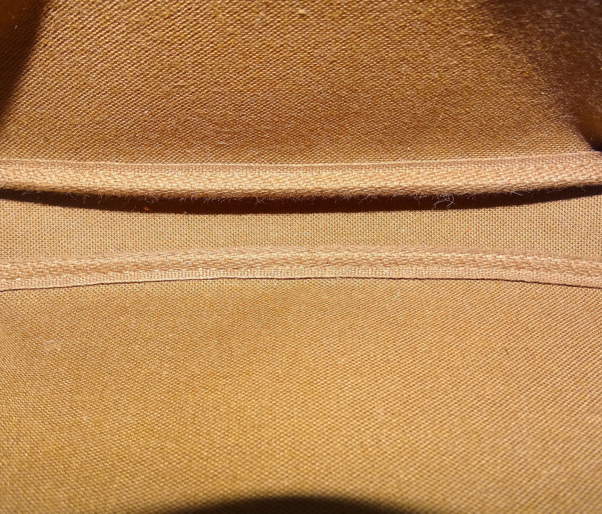 Condition Notes: Darkening to the vachetta, tarnishing to the hardware, strap glued back together on end