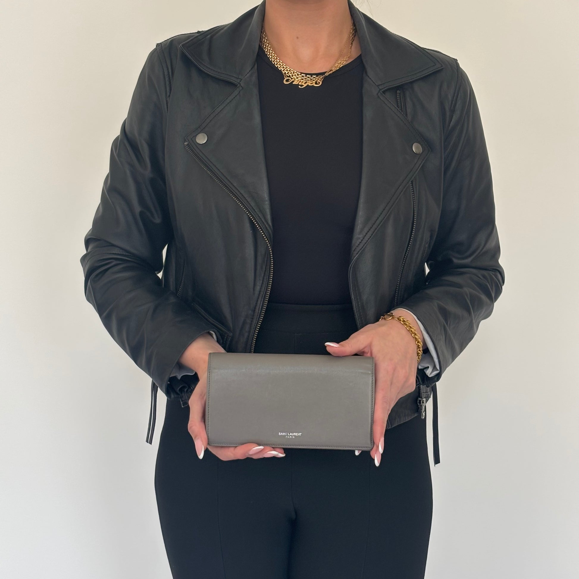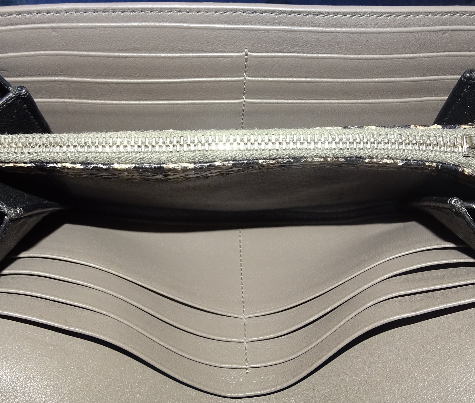 Saint Laurent Grey Calfskin Flap Wallet With Snake Interior Trim
