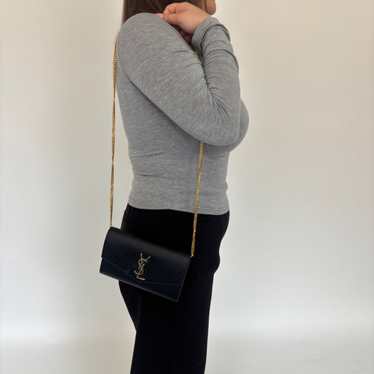 Saint Laurent Uptown Chain Wallet Black Grain De Poudre 2022