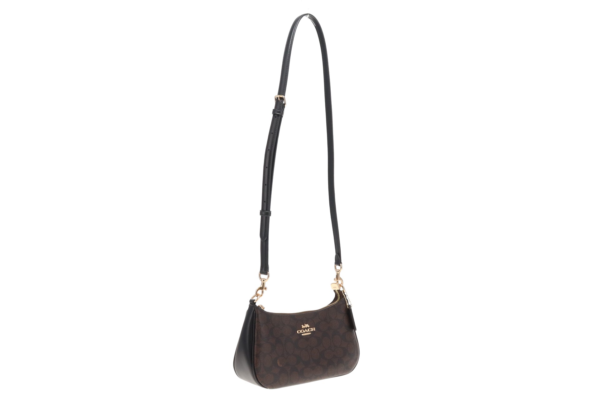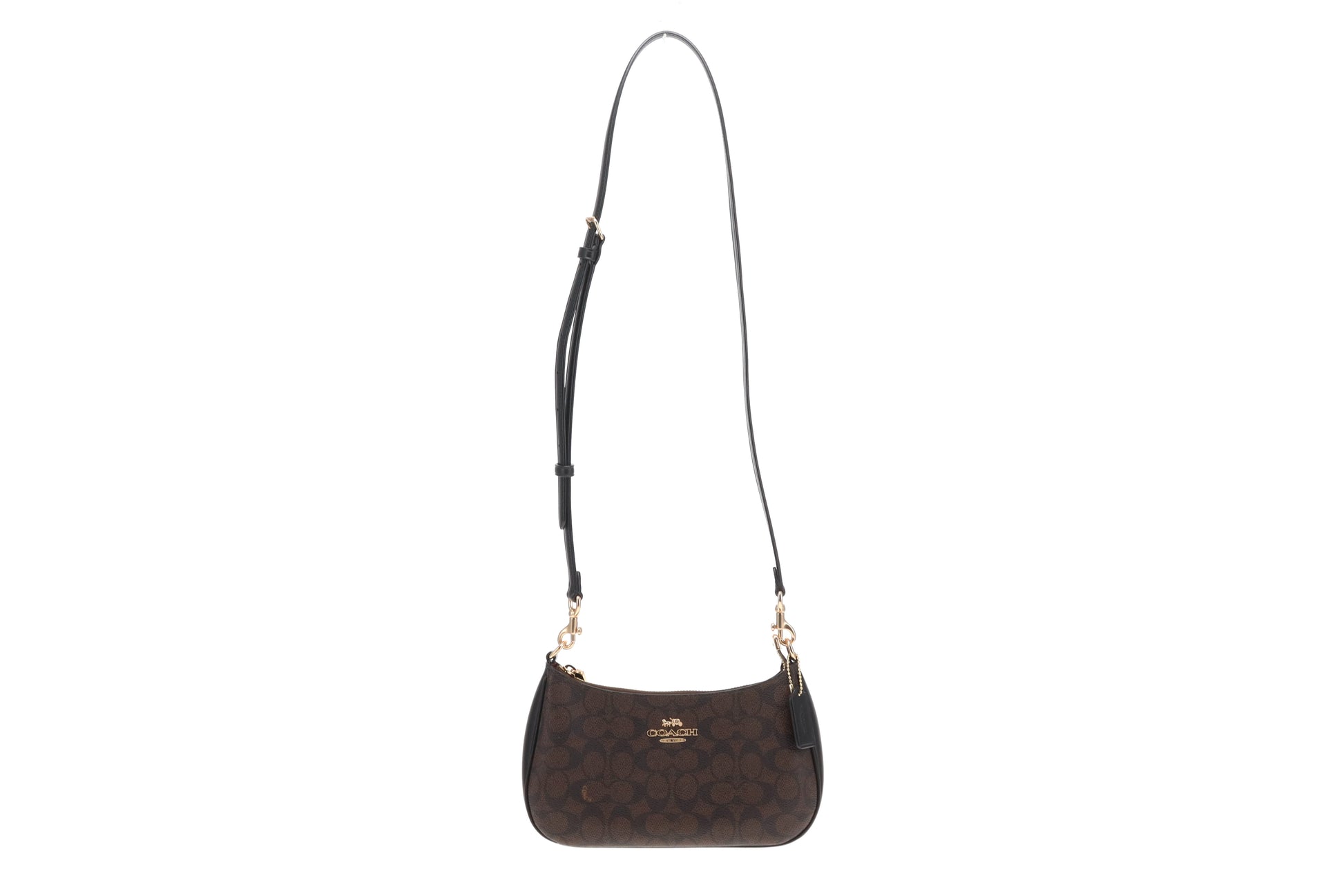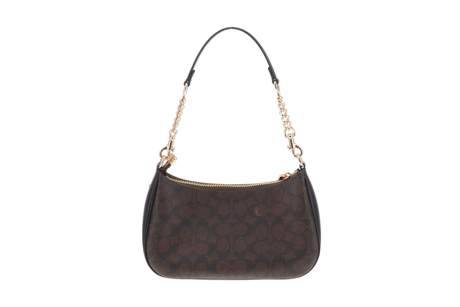 Coach Teri Signature Convertible Shoulder Bag Dark Brown
