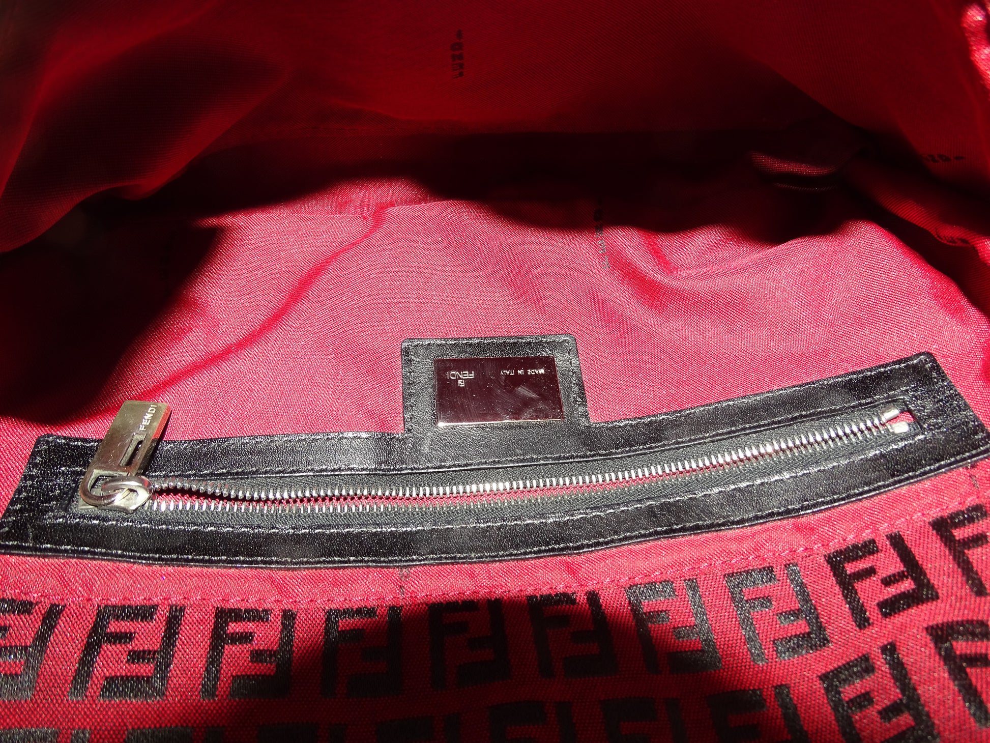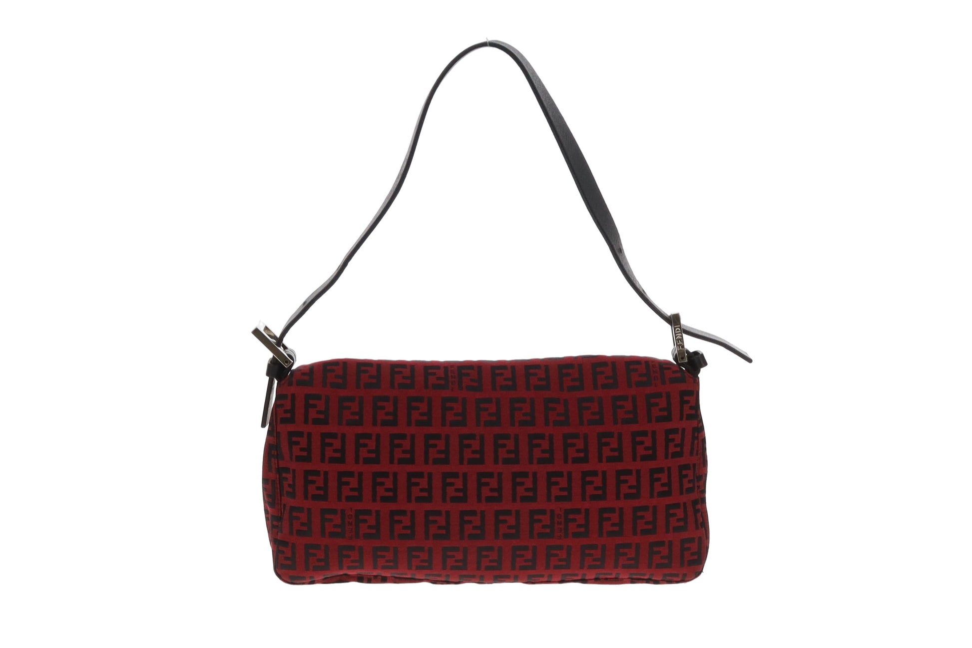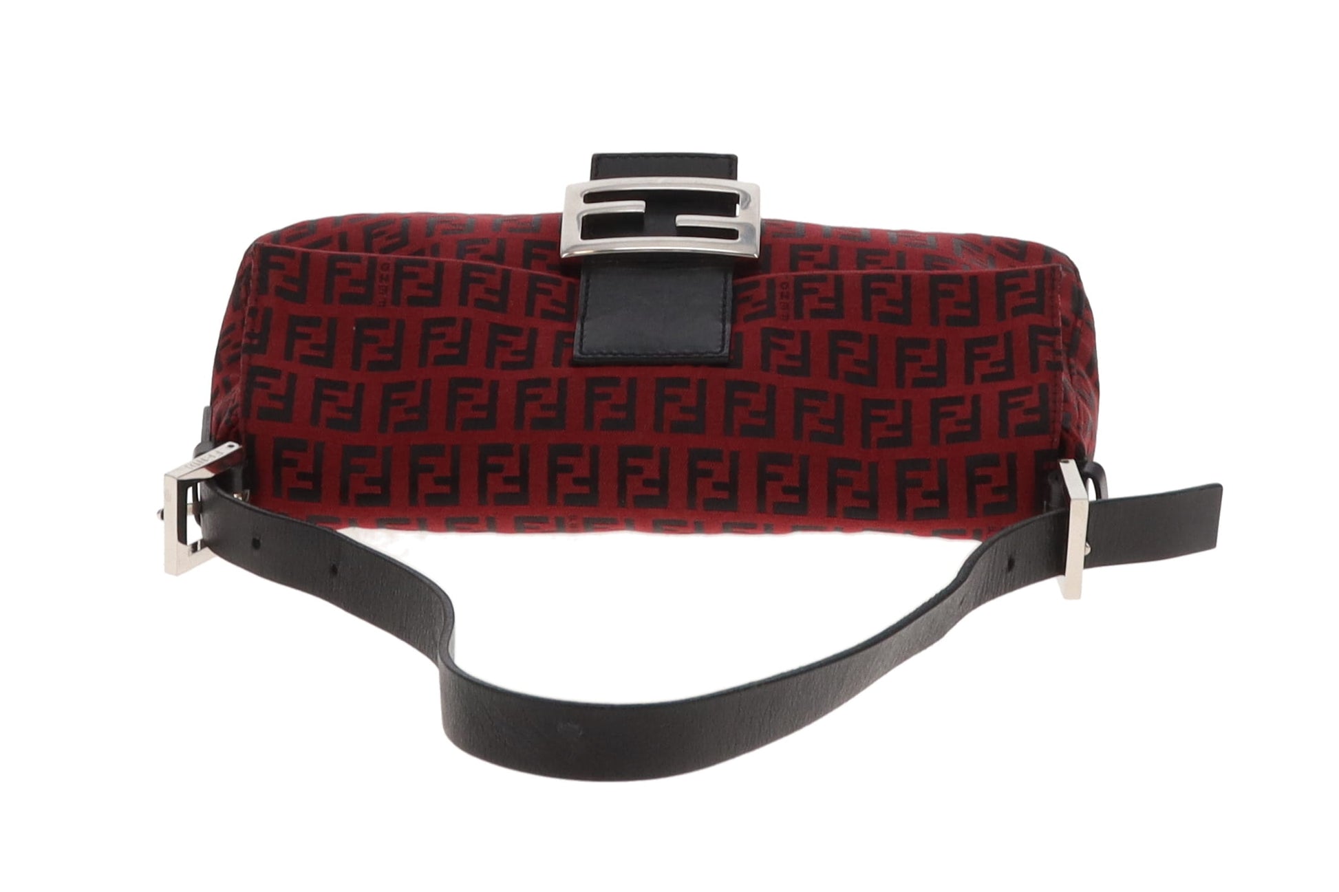 Fendi Baguette Red Zucchino and Black Leather Trim