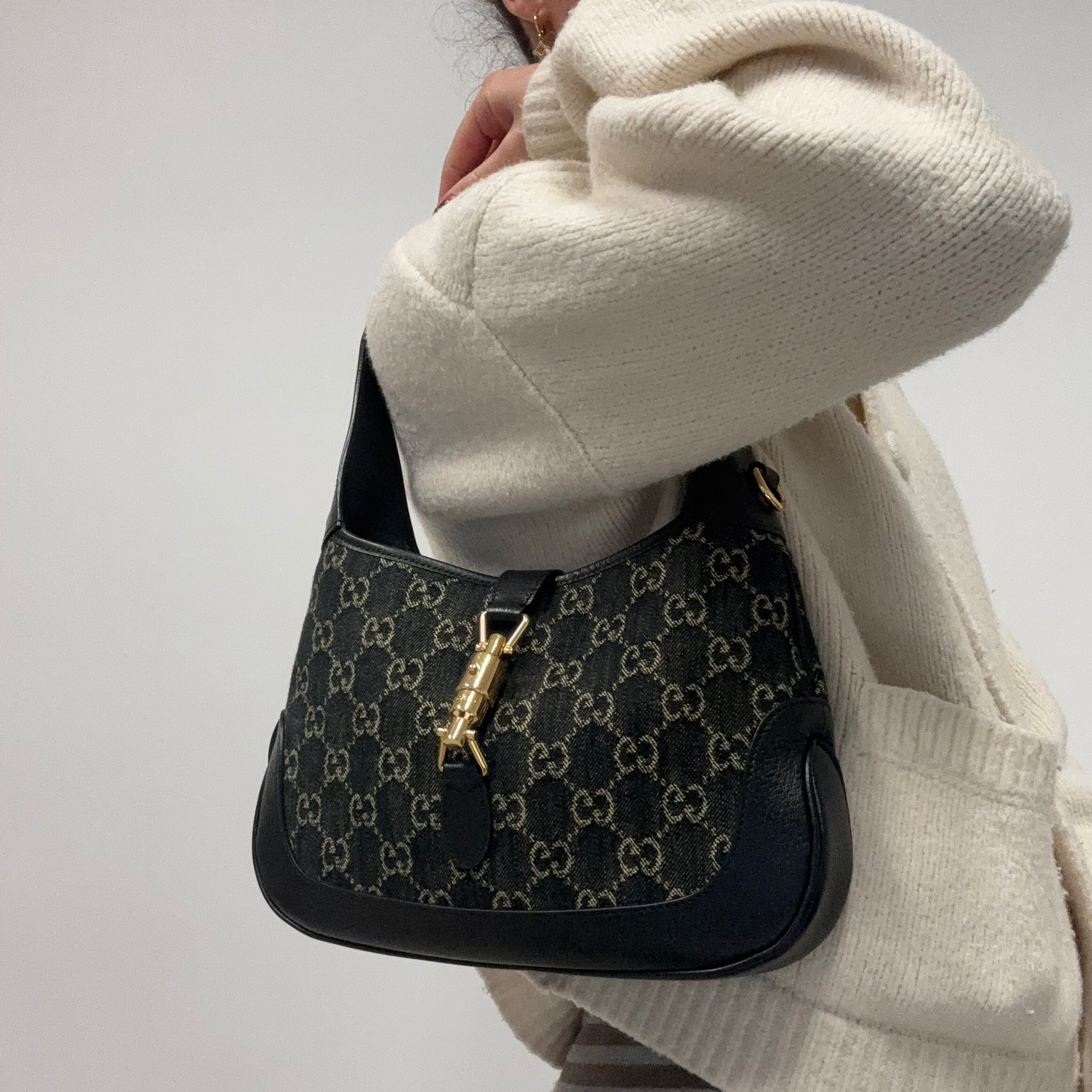 Gucci Jackie 1961 Medium Black Denim & Leather
