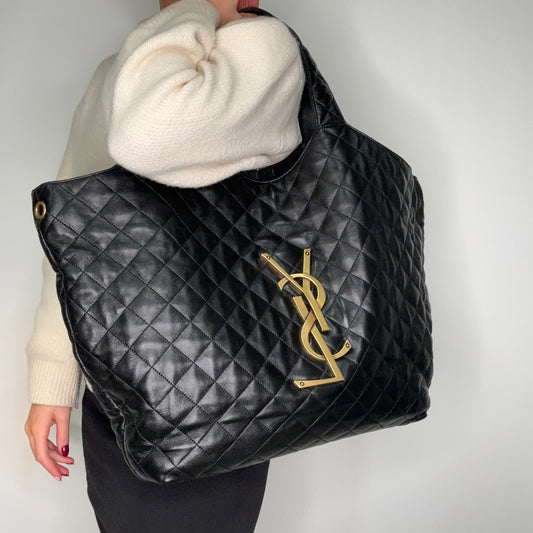 Saint Laurent Maxi Icare Tote Black Lambskin GHW 2023