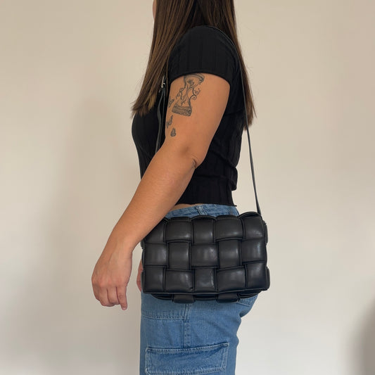 Bottega Veneta Black Padded Cassette Intrecciato Leather