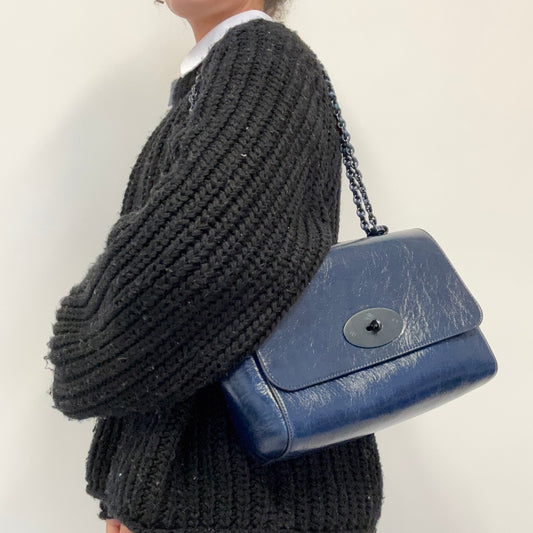 Mulberry Lily Smooth Glossy Leather Navy Medium