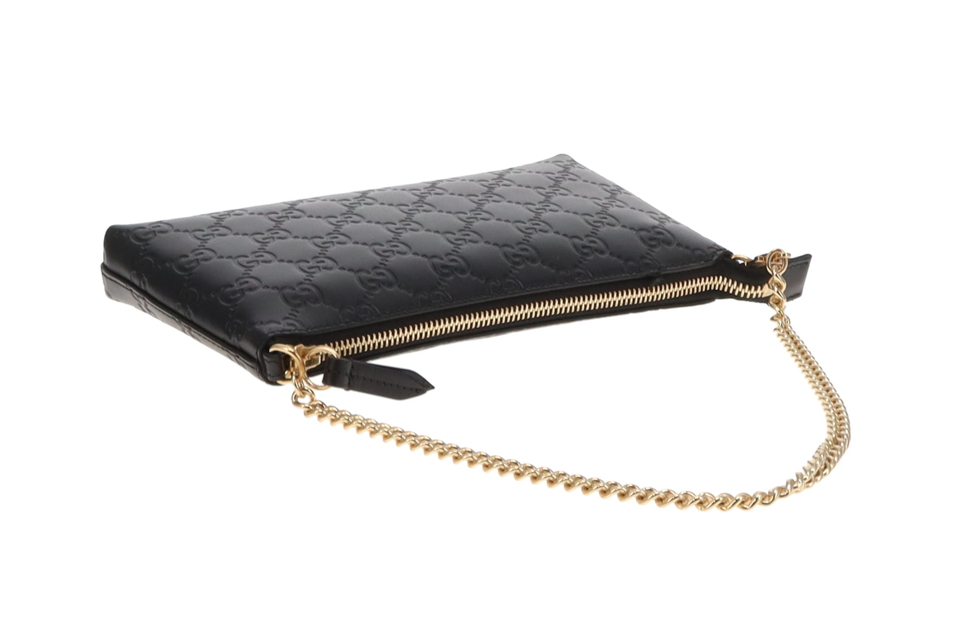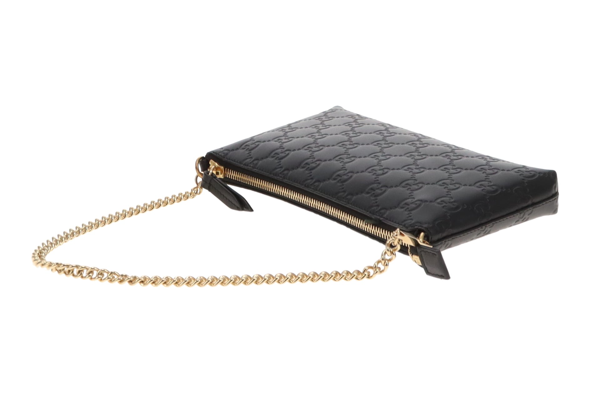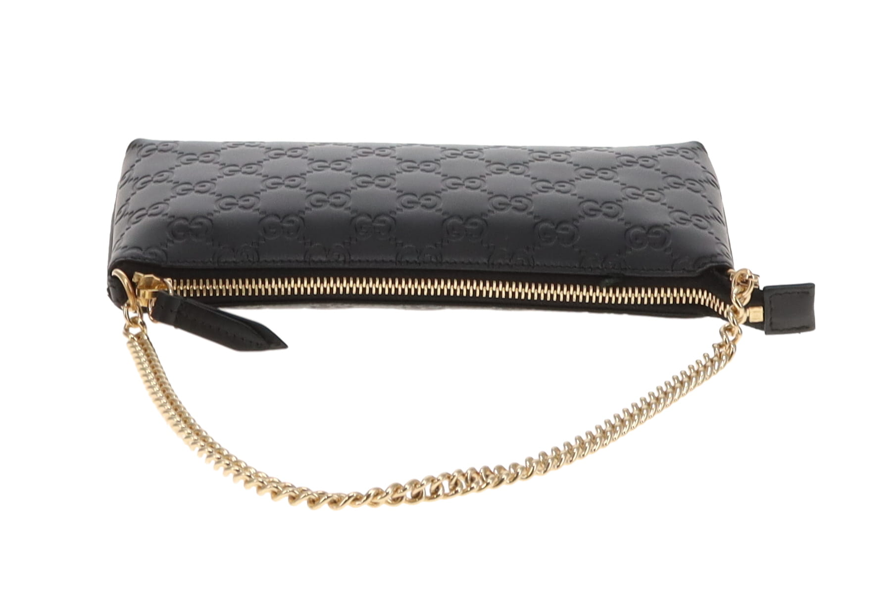 Gucci Black Guccissima Leather Signature Wrist Wallet on Chain Pochette Bag