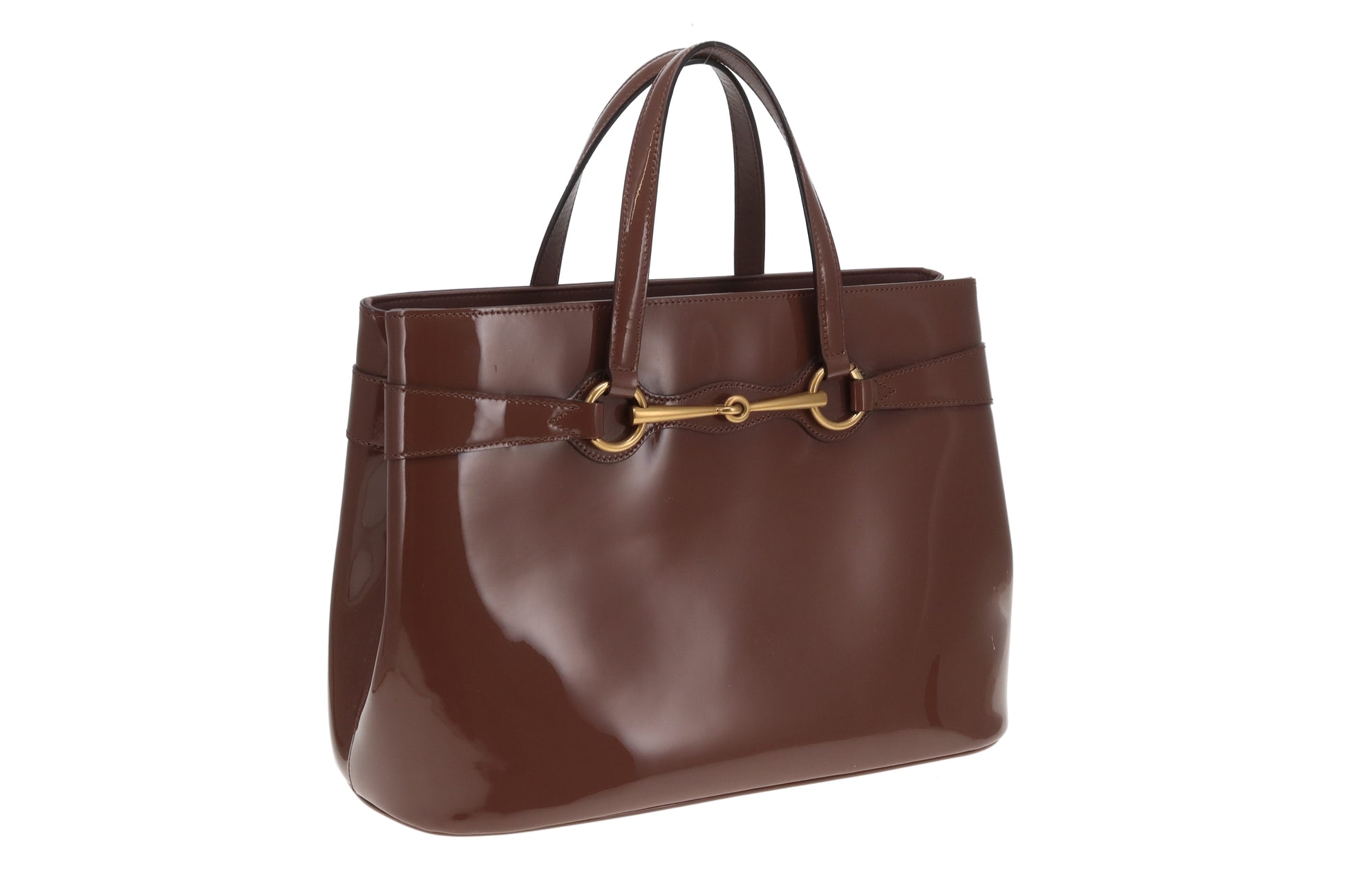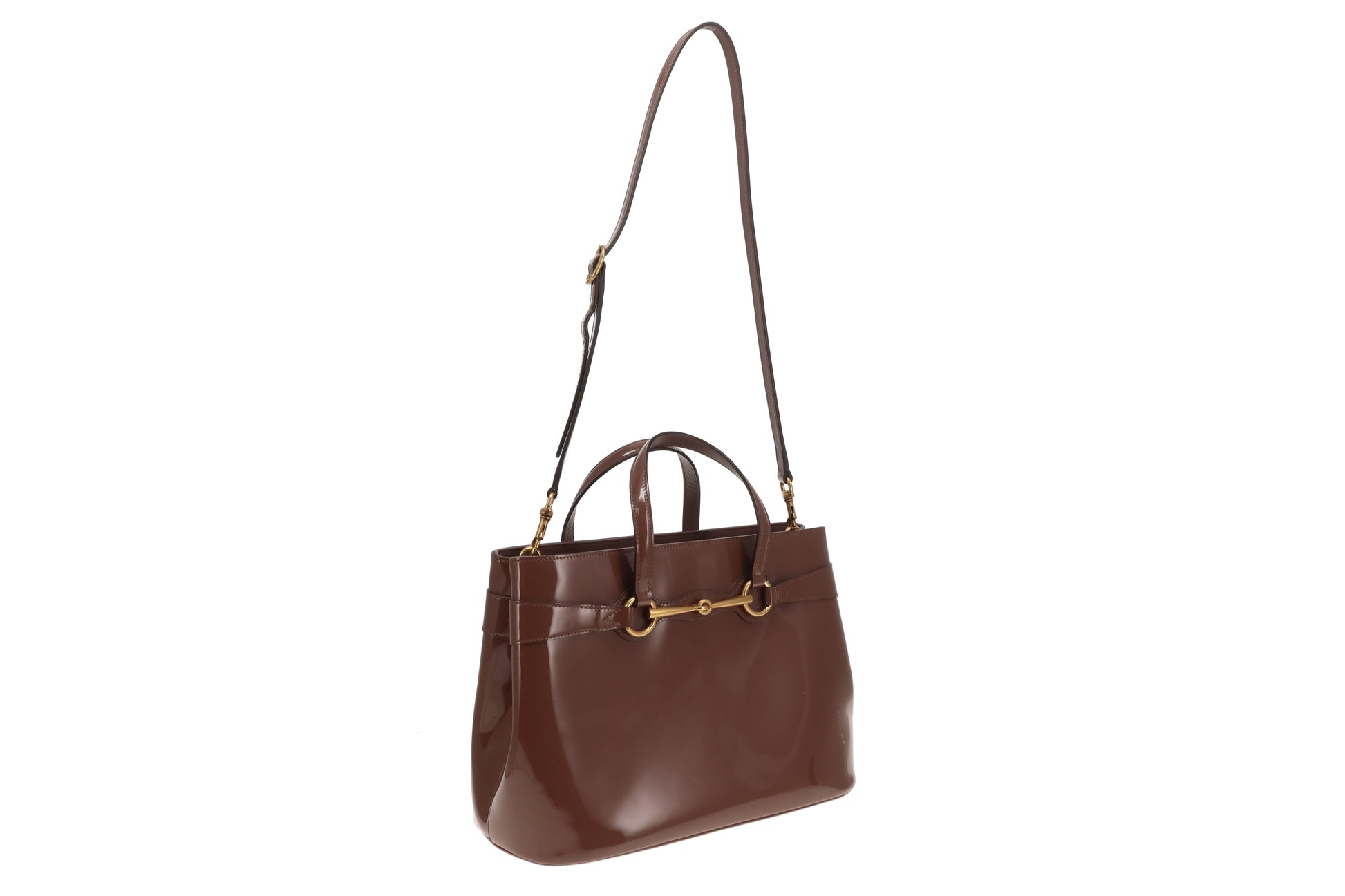 Gucci Horsebit Tote with Strap Mocha Patent Leather GHW