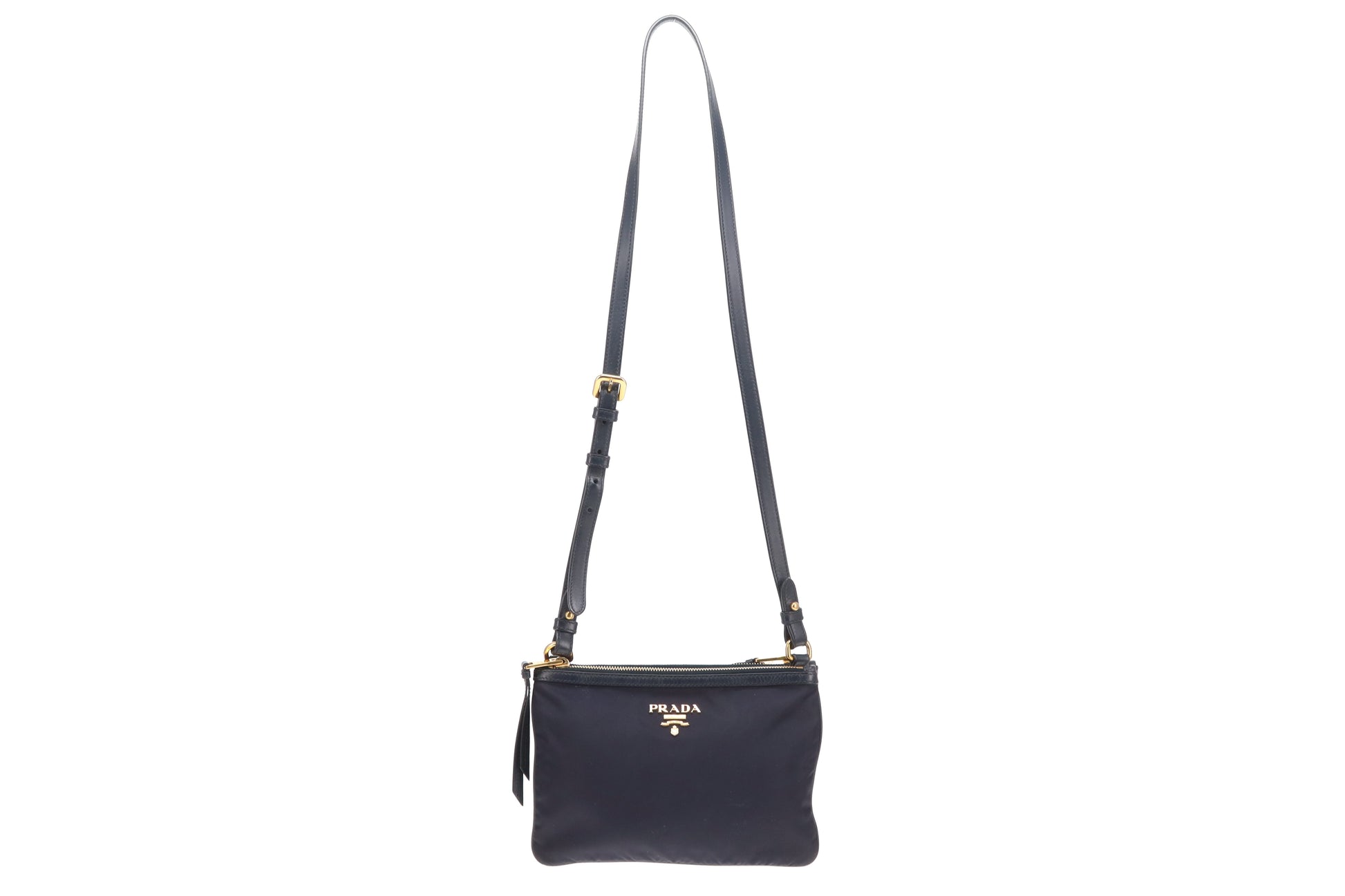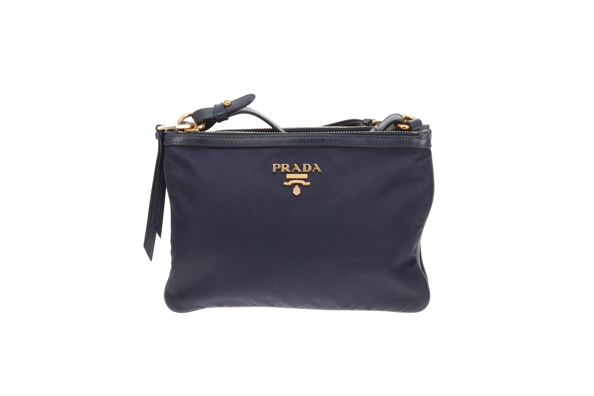 Prada Double Pouch Crossbody Bag Navy Nylon