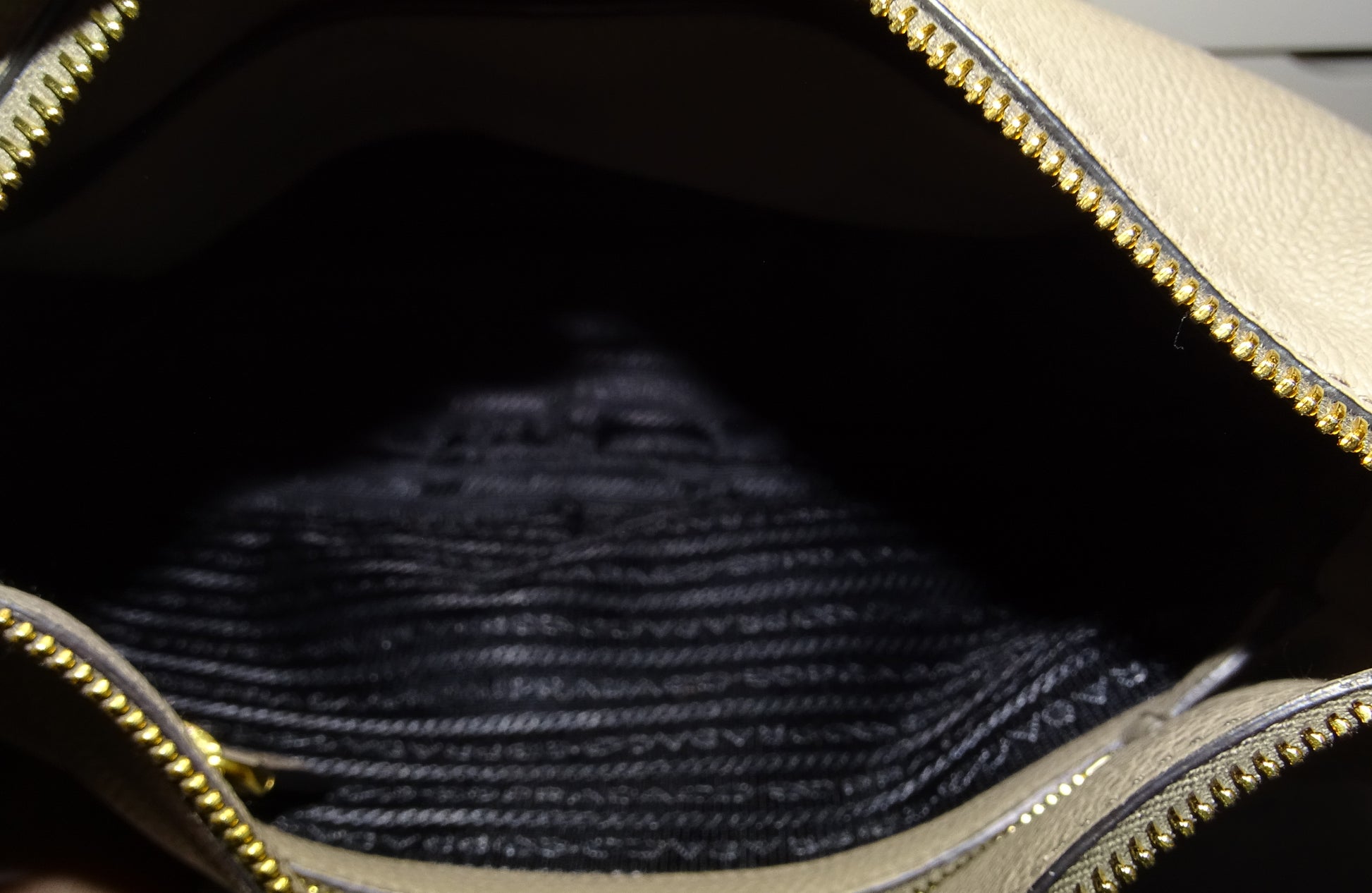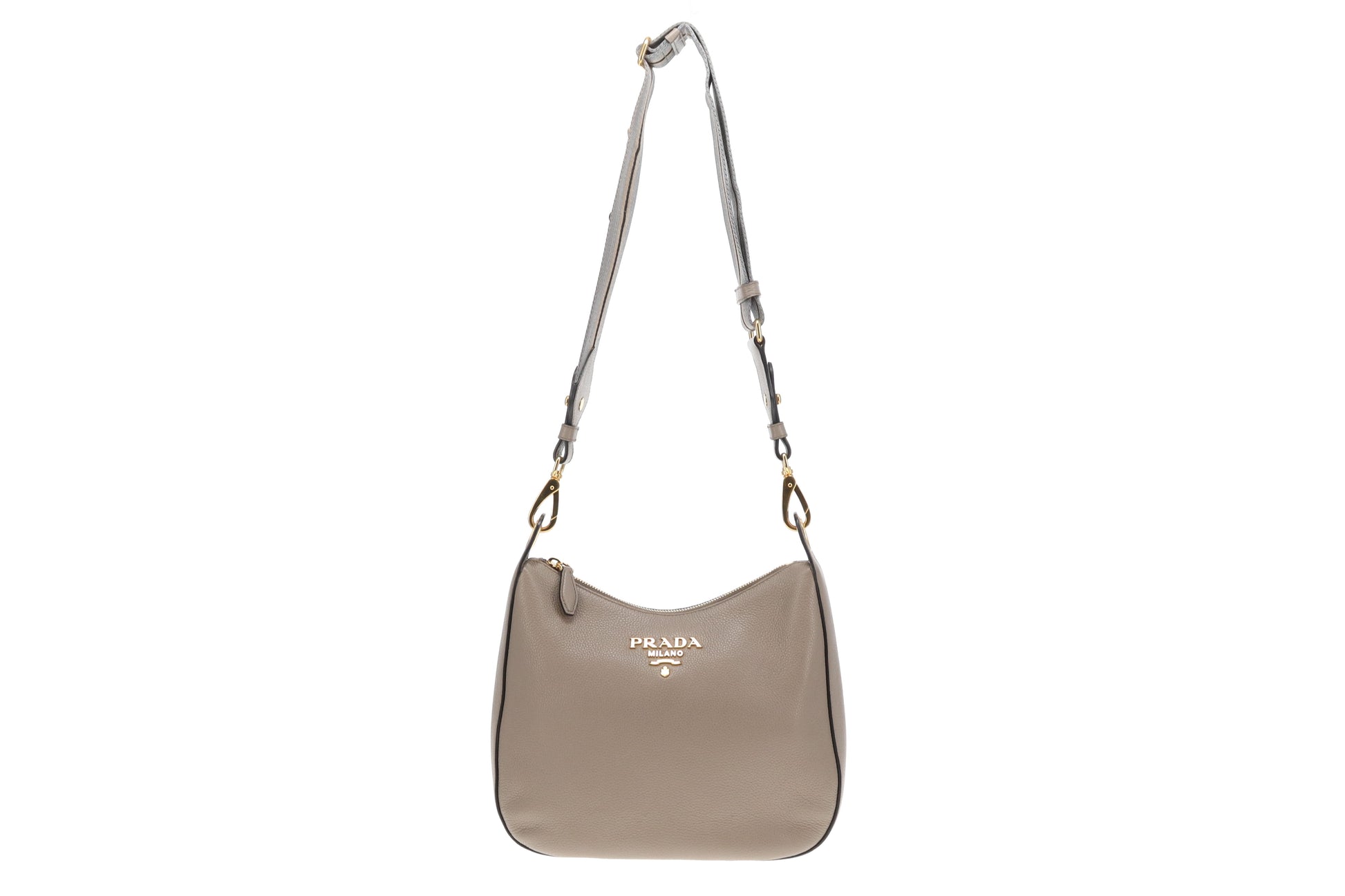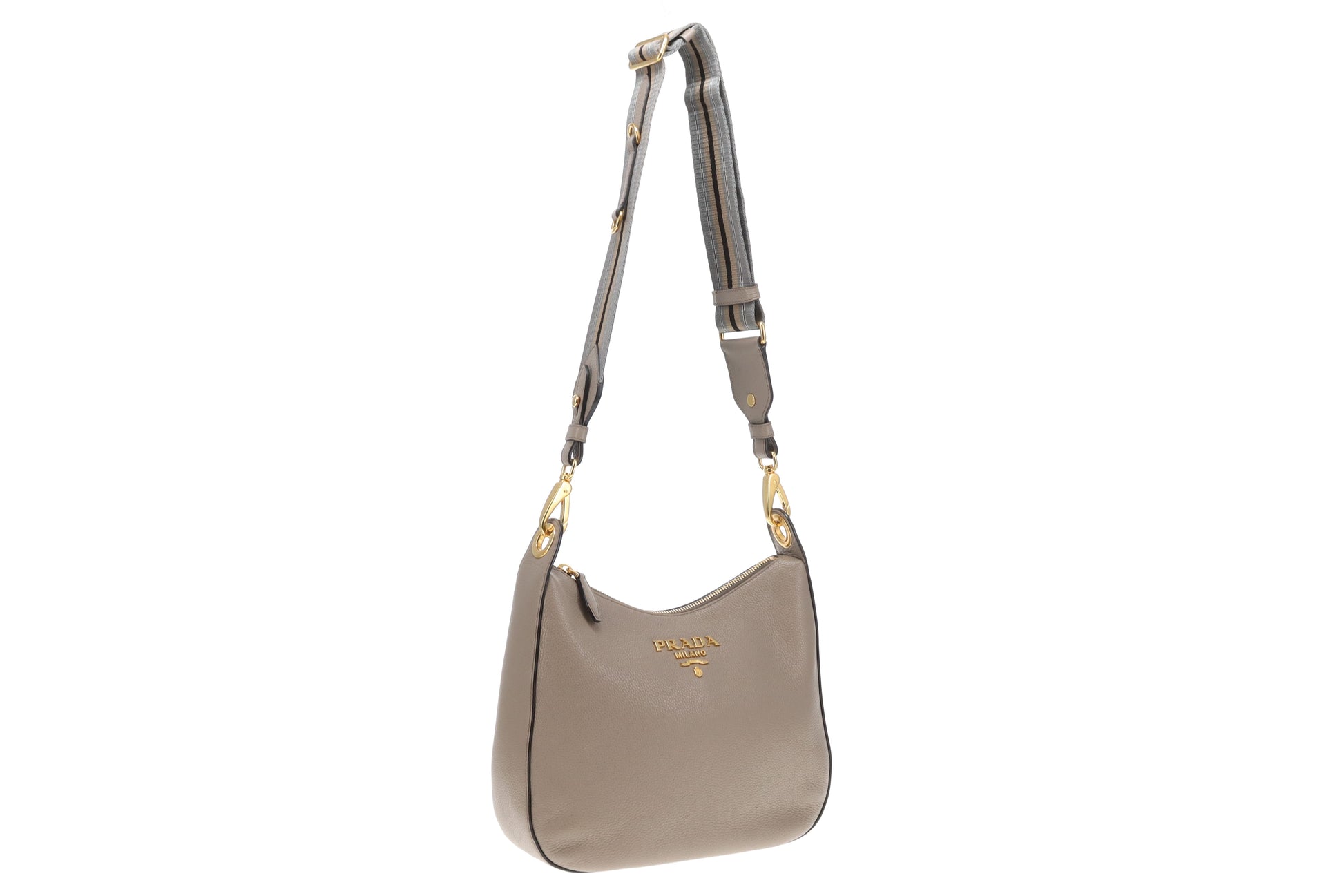 Prada Hobo Taupe Leather with Striped Canavs Strap