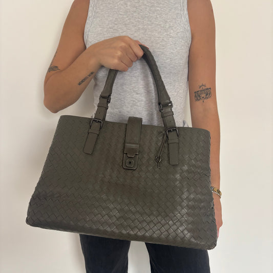 Bottega Veneta Roma Bag Olive Green Intrecciato