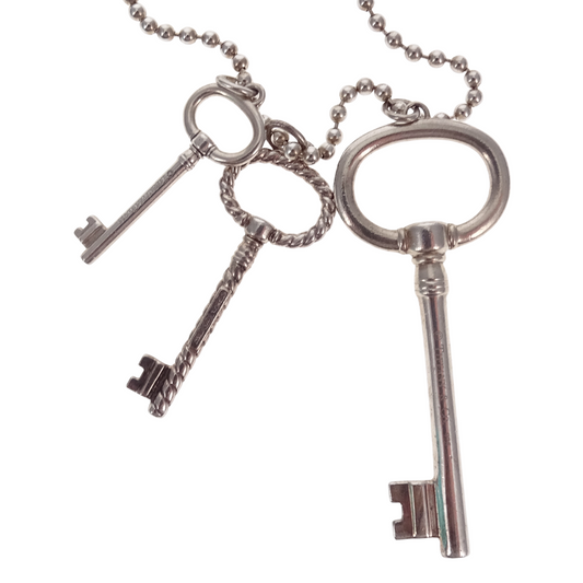 Tiffany & Co 3 Key Necklace with Beaded Chain Sterling Silver