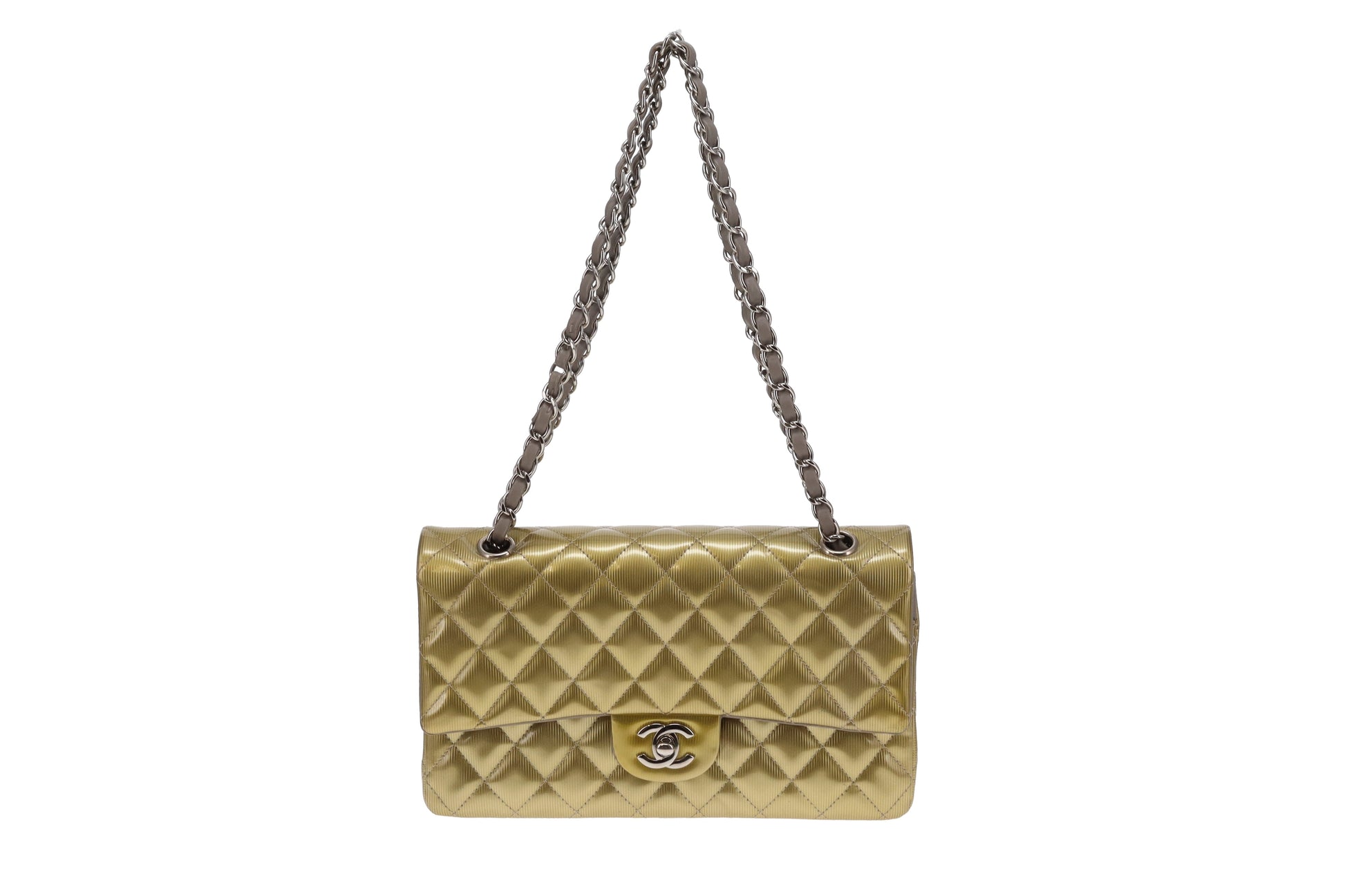 Chanel Classic Double Flap Bag Seasonal Gold Patent Leather SHW 2012