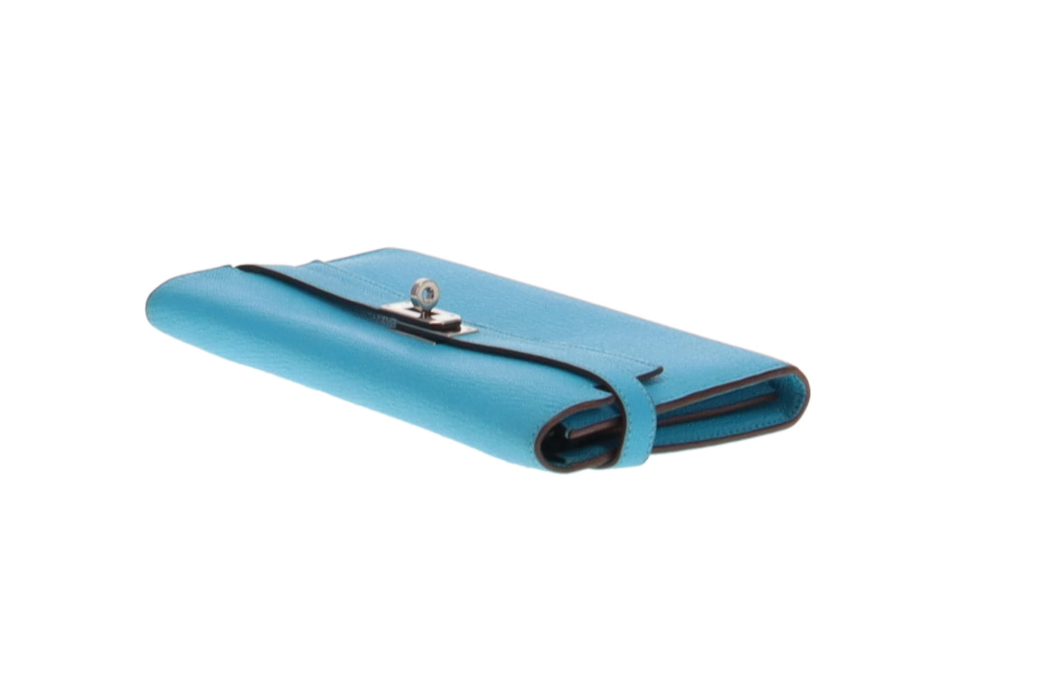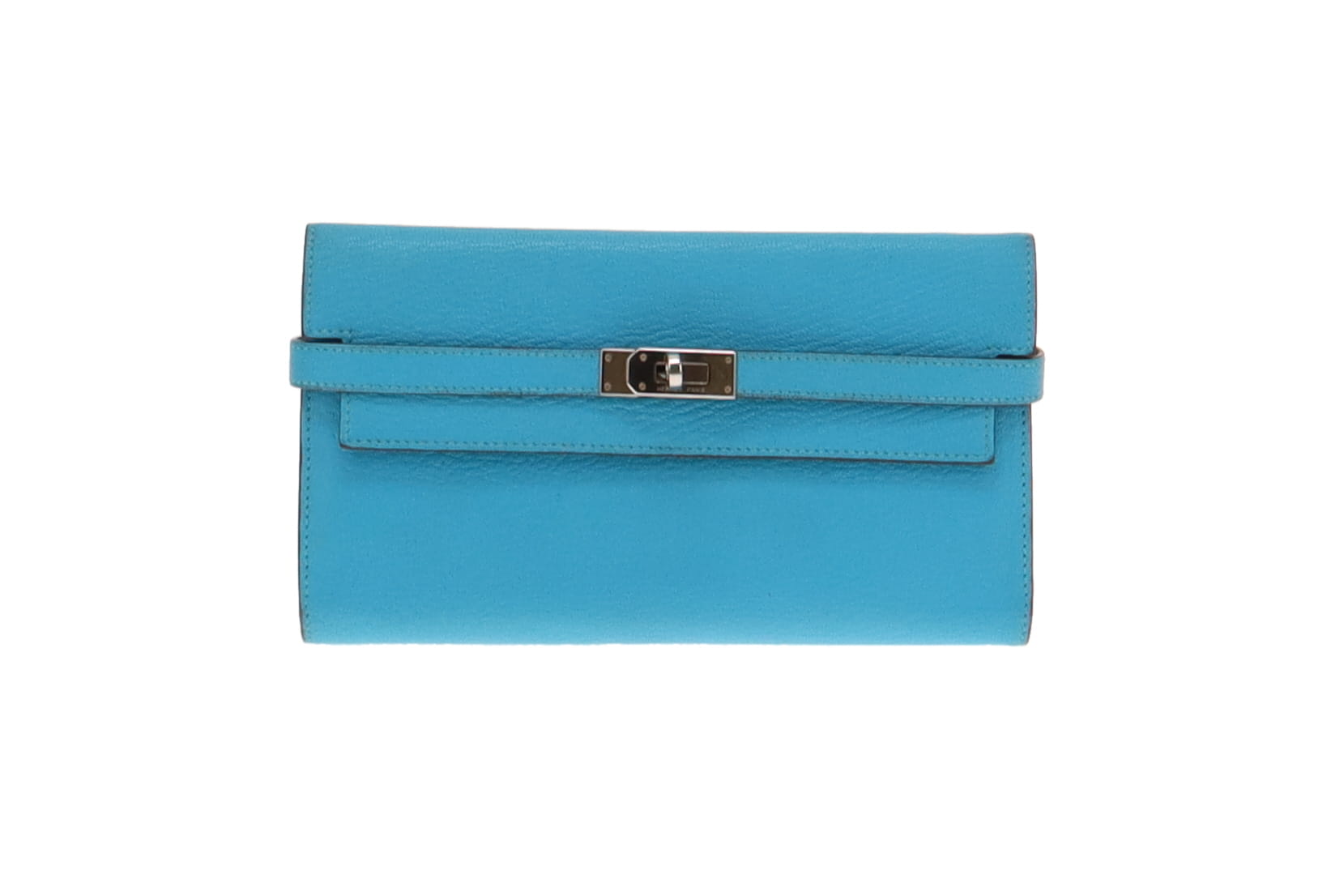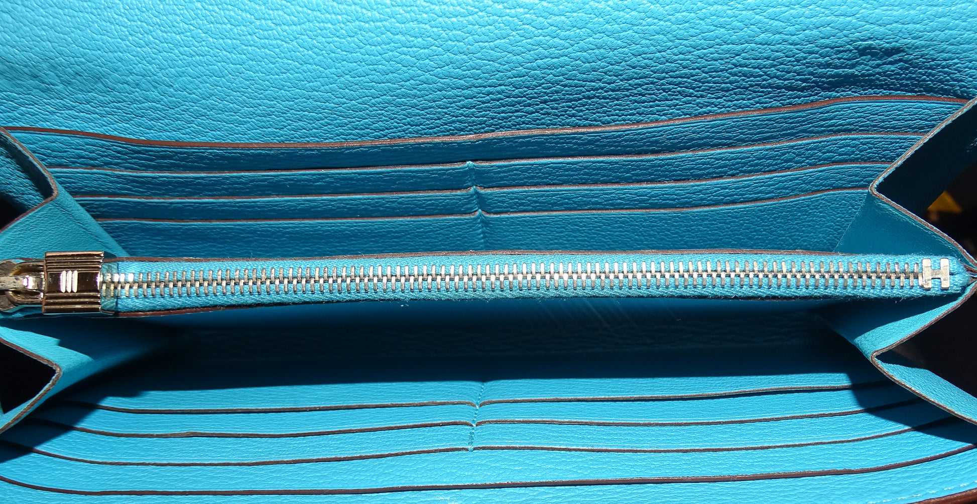 Hermes Bleu Azteque Mysore Goatskin Kelly Classic Wallet 2014