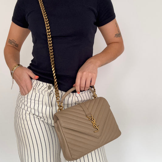 Saint Laurent College Bag In Dark Beige Leather