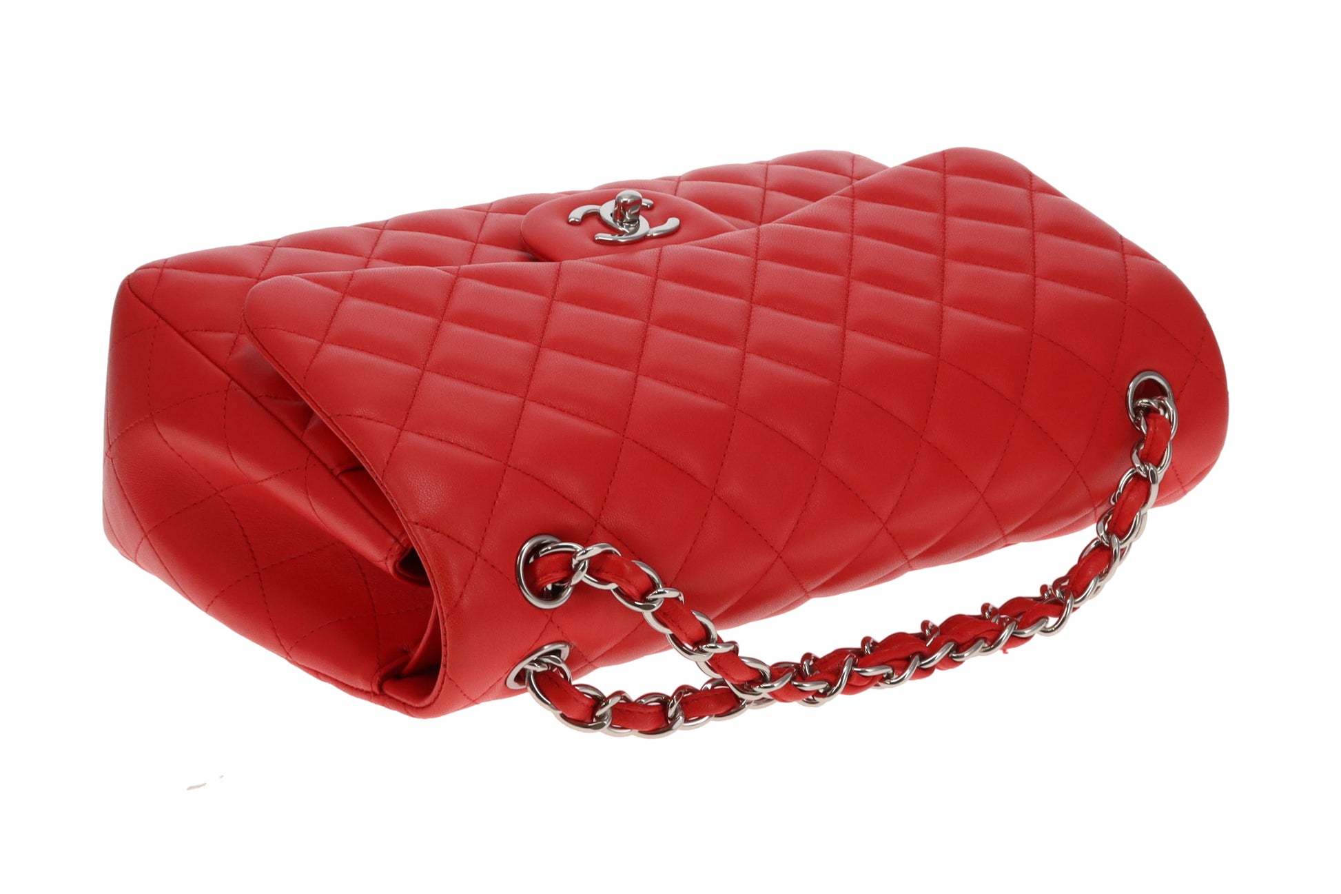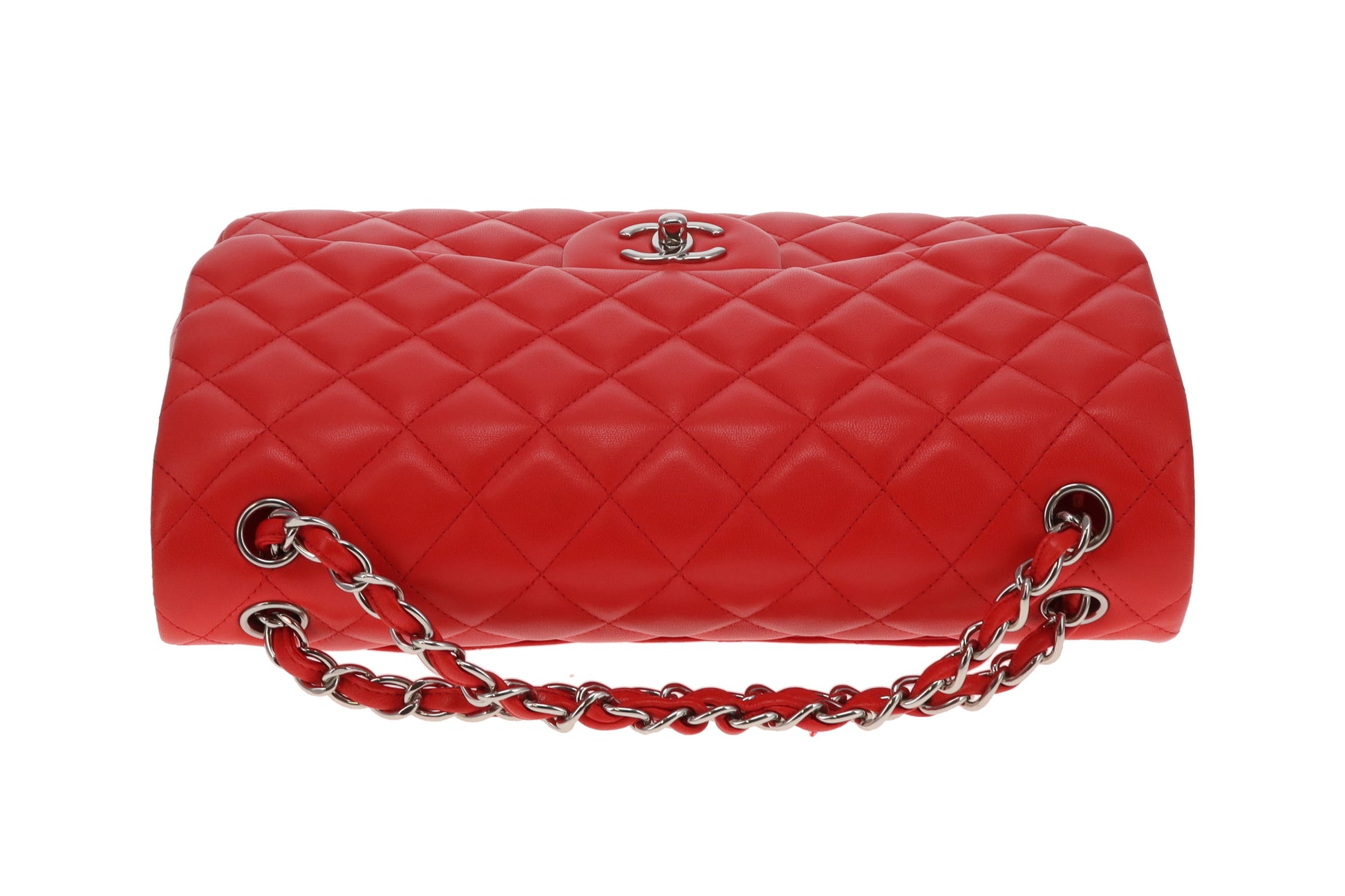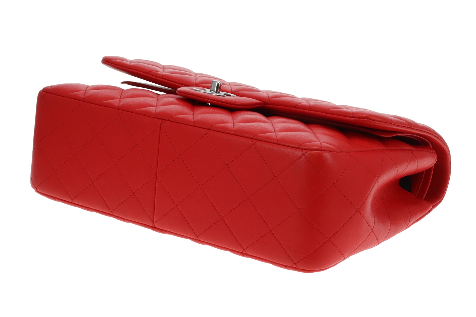 Chanel Classic Jumbo Double Flap Red Lambskin With Silver Hardware 2016/17