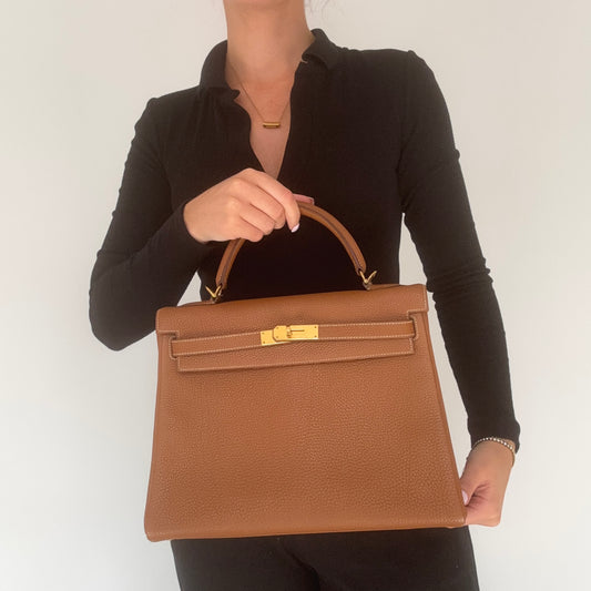 Hermes Kelly 32 In Gold Togo Leather 2003 Vintage