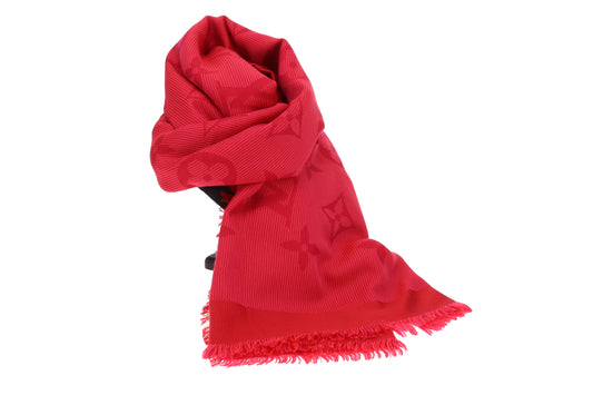 Louis Vuitton Classic Shawl In Rouge Monogram Silk & Wool & Polyester