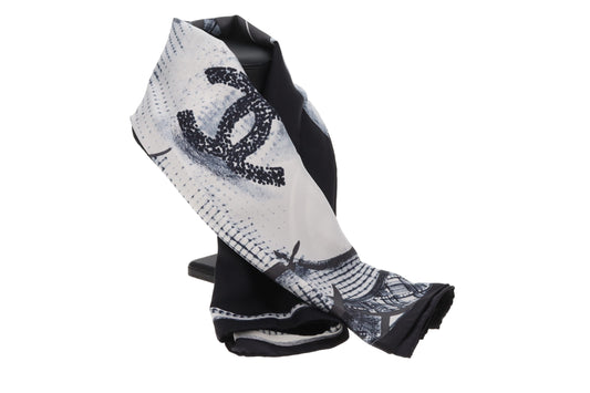Chanel Camelia Print Artwork 90cm Silk Scarf