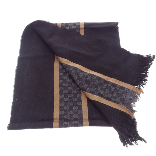 Gucci Wool & Silk Gold Stripe & Black Scarf