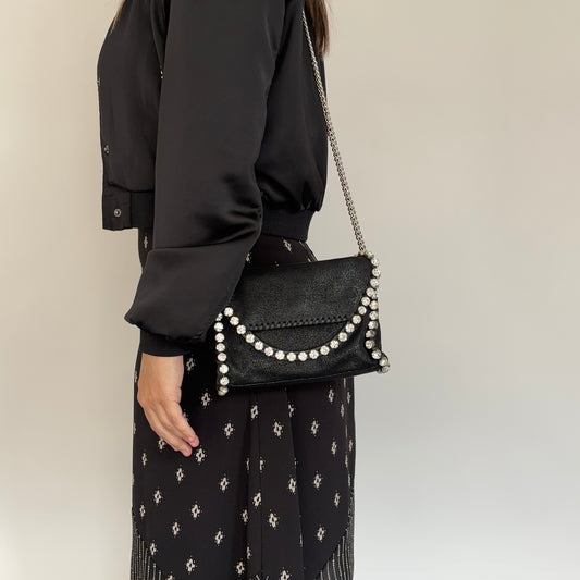 Stella McCartney Falabella Crystal Mini Foldover Black Shaggy Deer SH