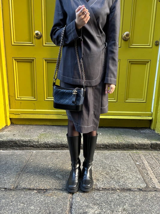 Chanel Gabrielle Hobo Small Aged Calfskin Black & Navy 2020