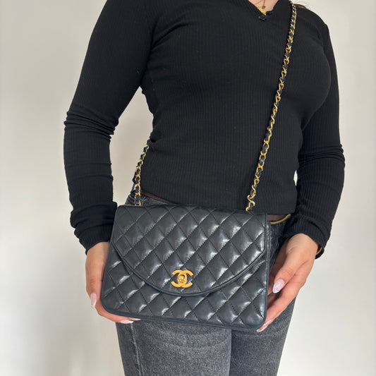 Chanel Half Moon Flap Bag Black Lambskin GHW 1989/91