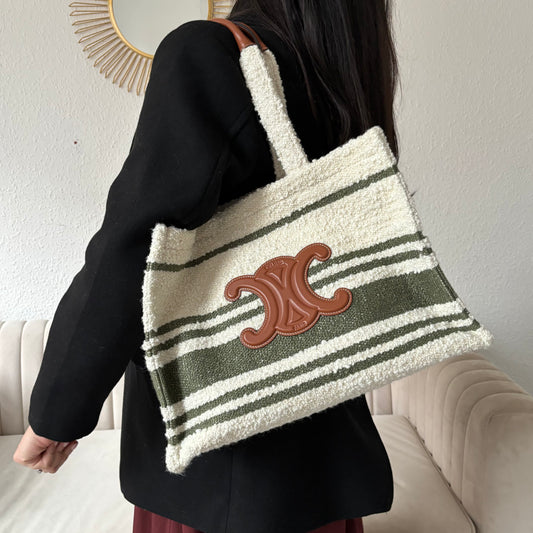 Celine Triomphe Horizontal Cabas Cream and Khaki Cotton 2022