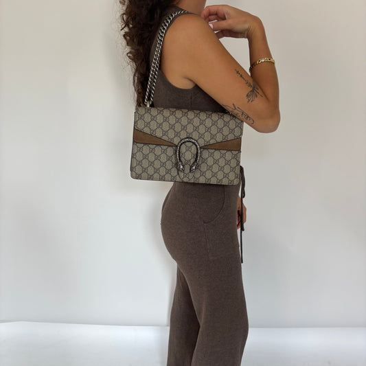 Gucci Dionysus Medium Shoulder Bag GG Supreme and Beige