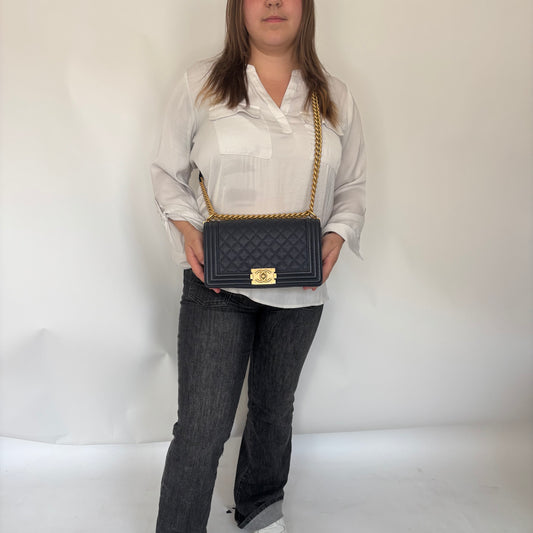 Chanel Boy Bag Old Medium Navy Caviar GHW 2018