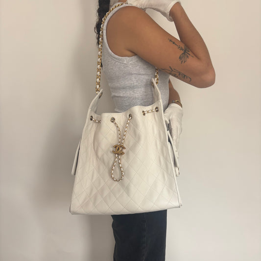 Chanel Classic Double Flap White Medium With Gold Hardware Vintage 1991/94
