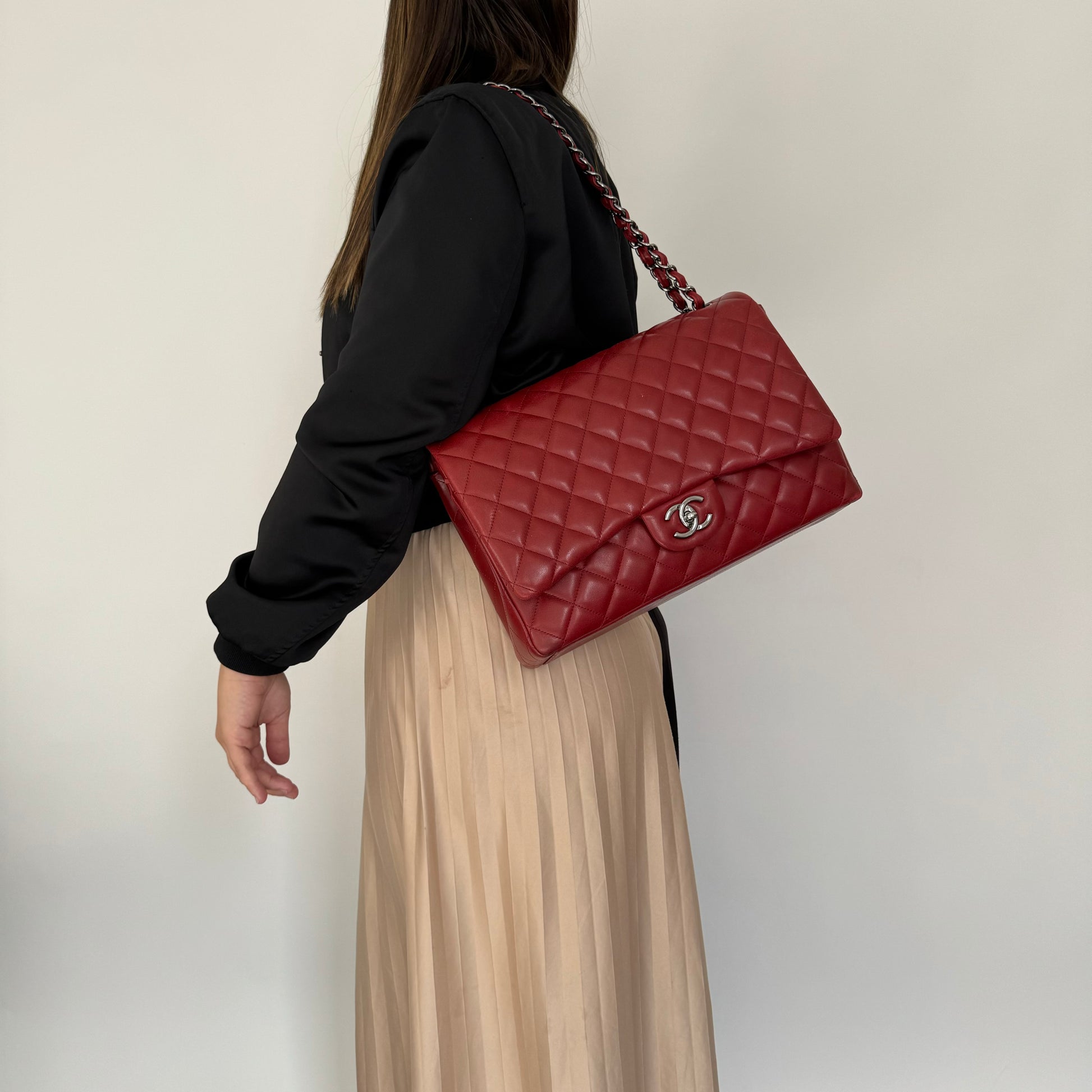 Chanel Classic Maxi Double Flap Rouge Leather SH 2013/14
