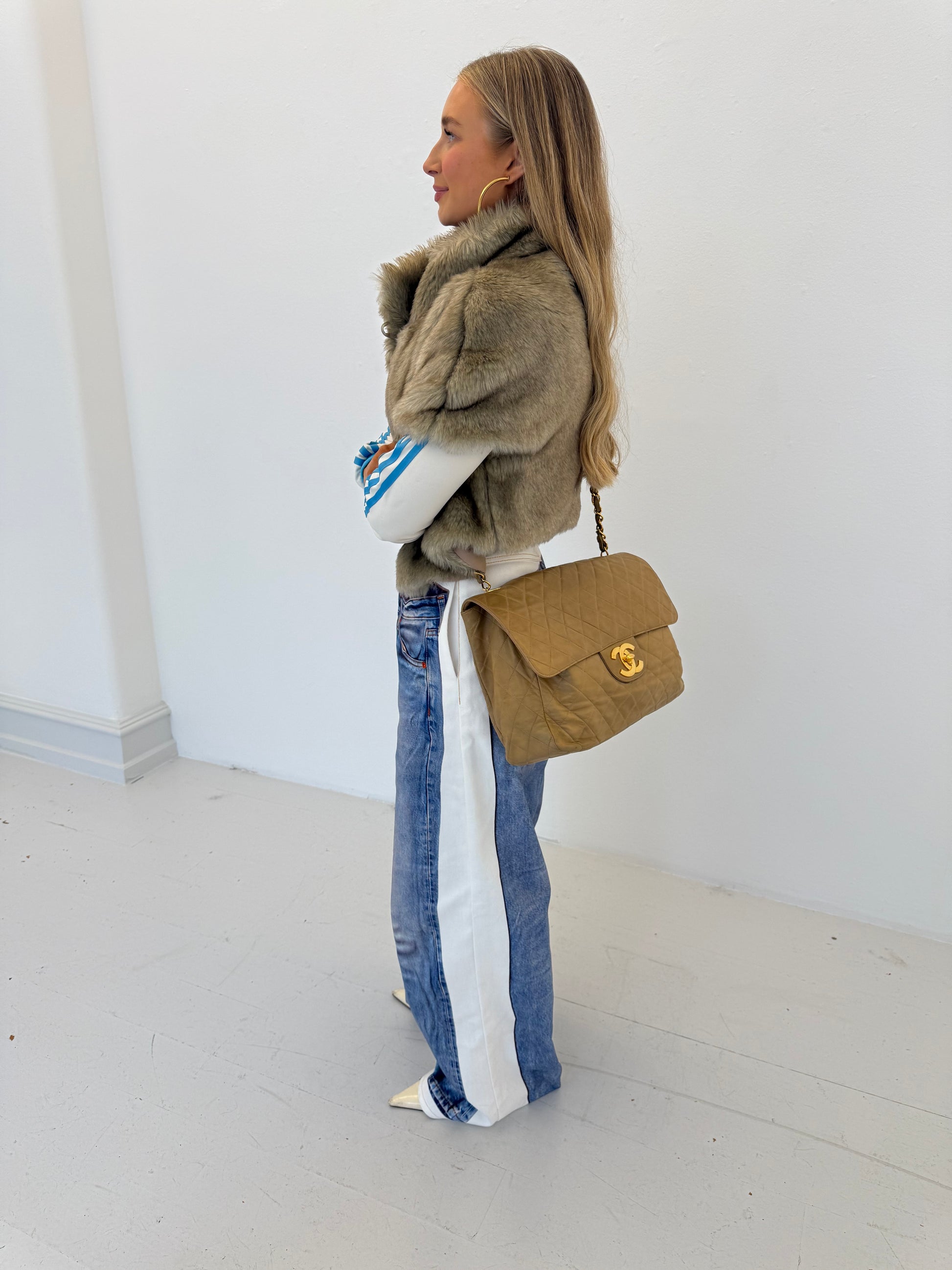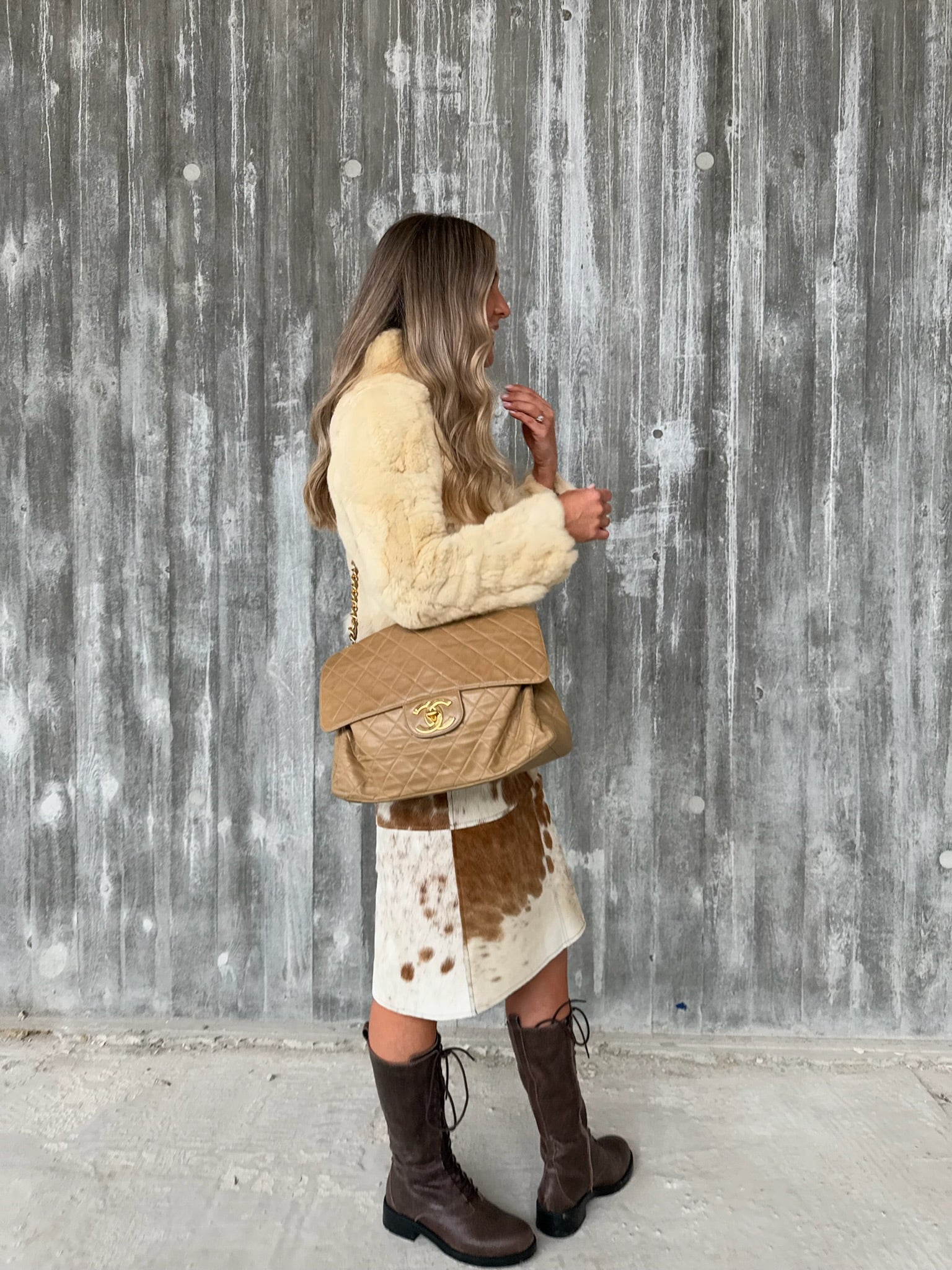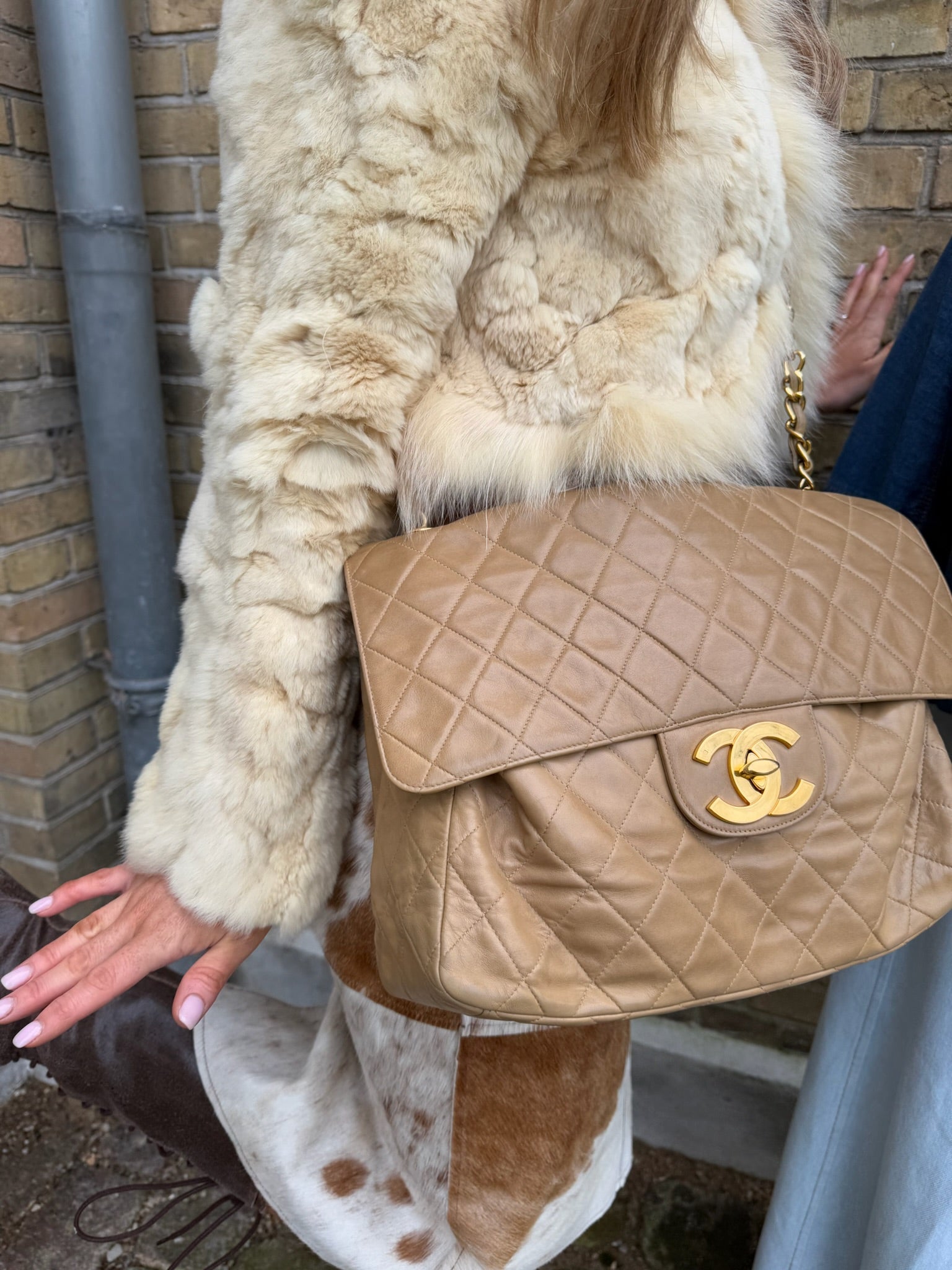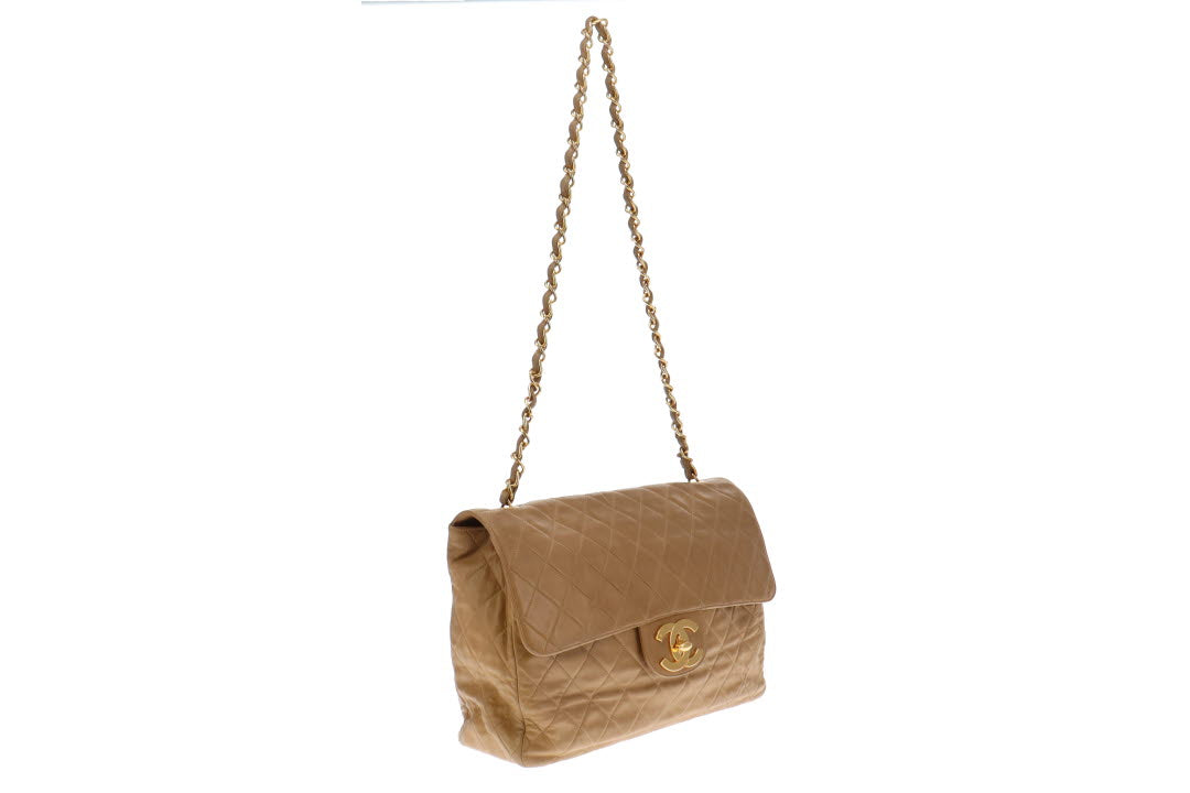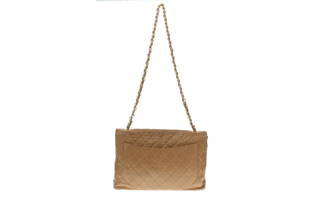 Chanel Vintage Dark Beige Lambskin Maxi Single Flap 1994/96