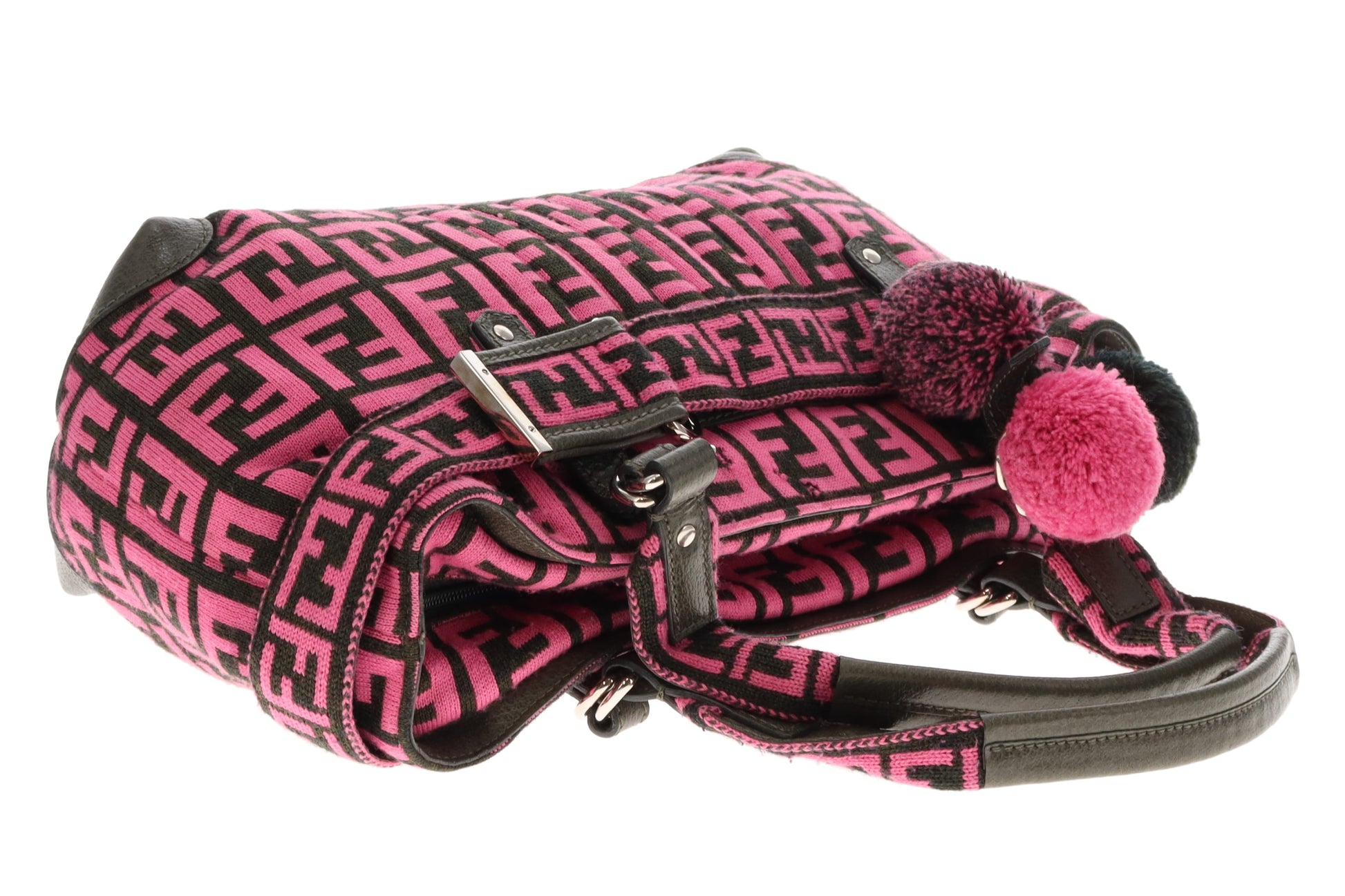 Fendi Pink/Zucca Wool Pom Pom Handbag
