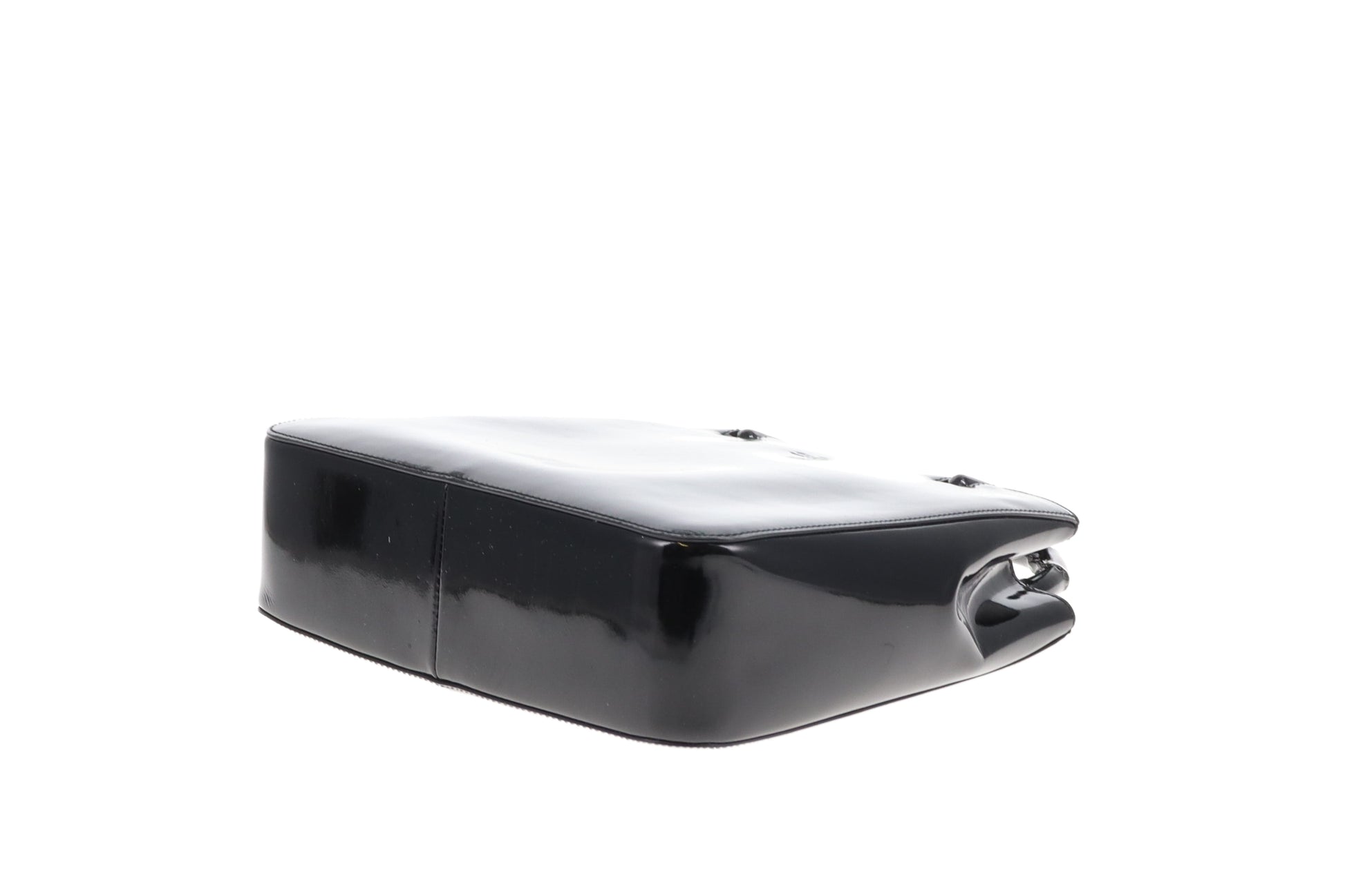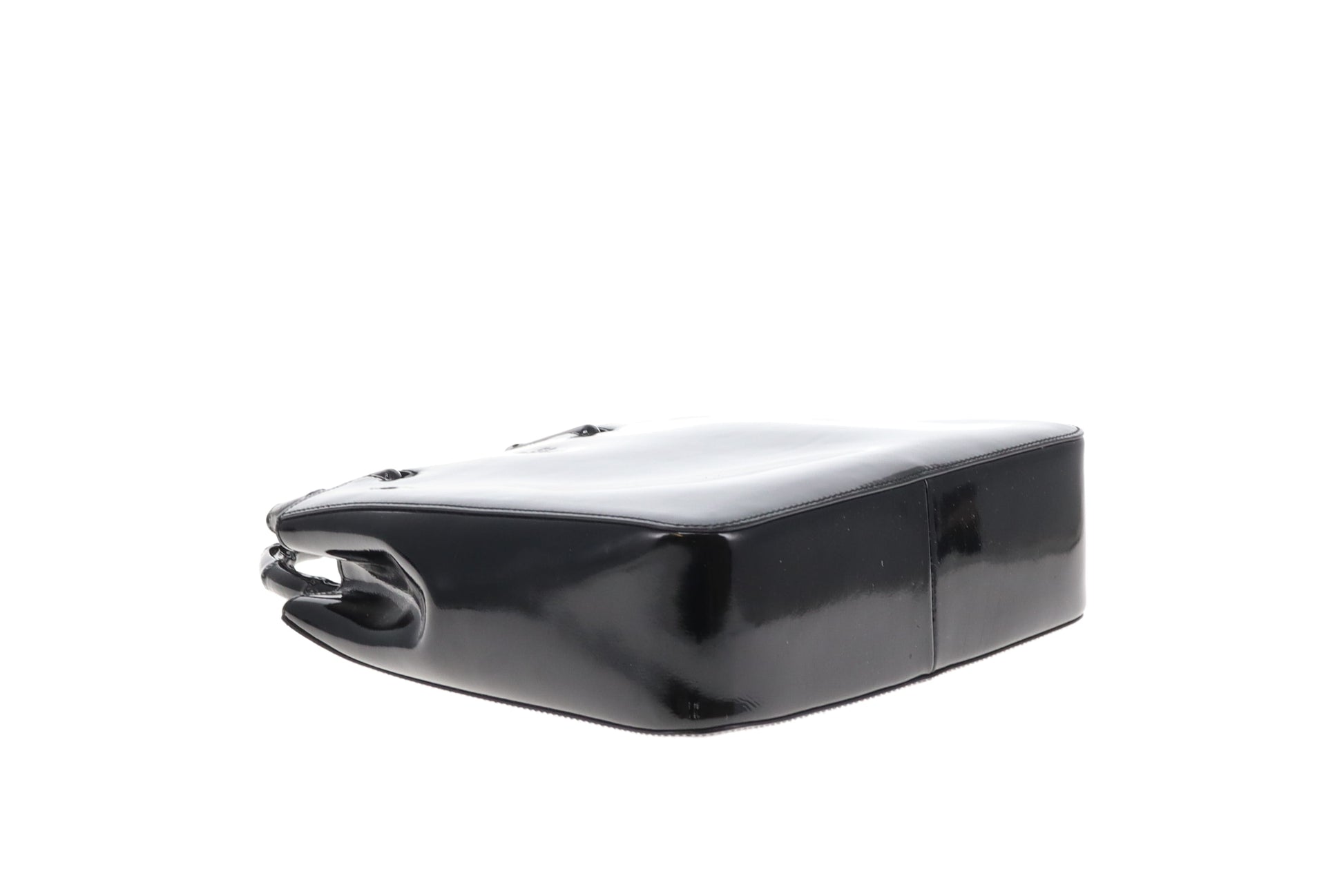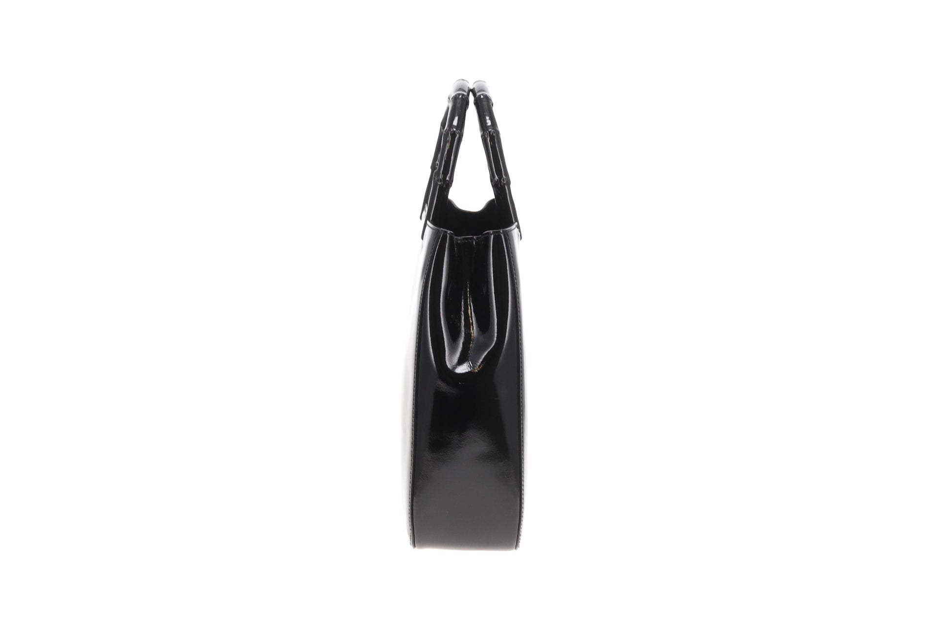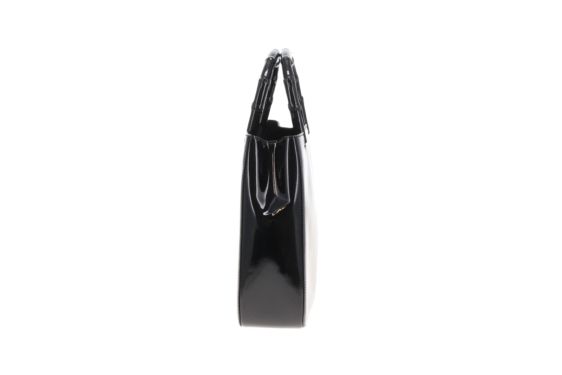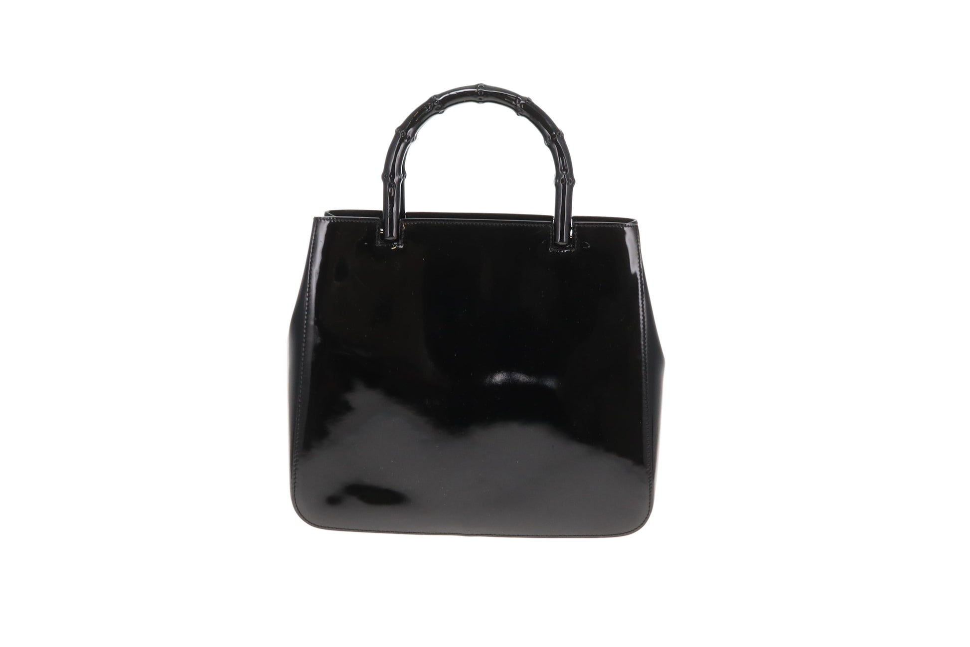 Gucci Bamboo Handle Bag All Black Patent Leather Vintage