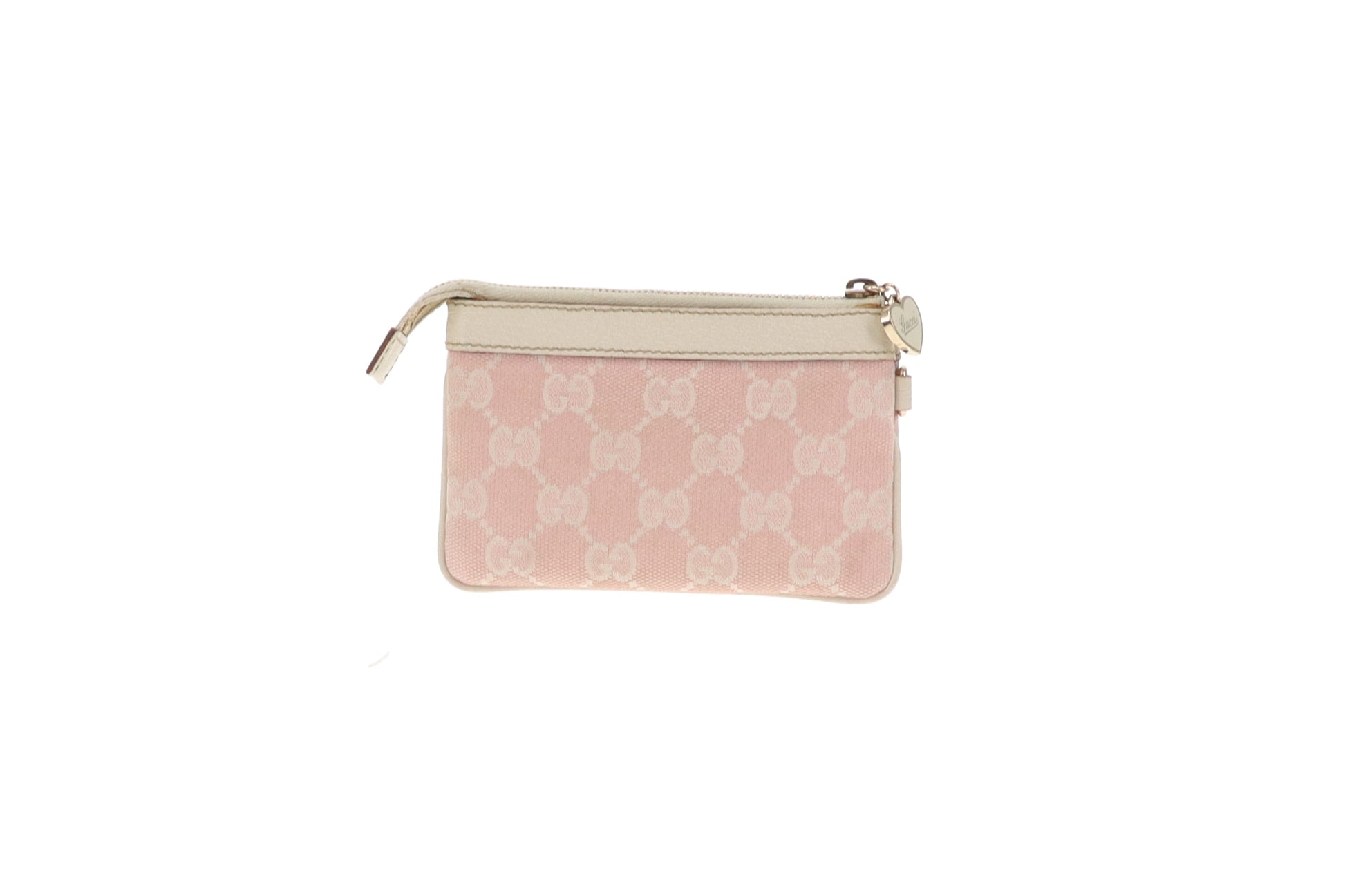 Gucci Coin Pouch Pink GG Canvas and Heart Zip