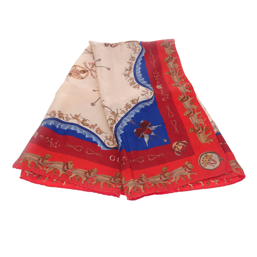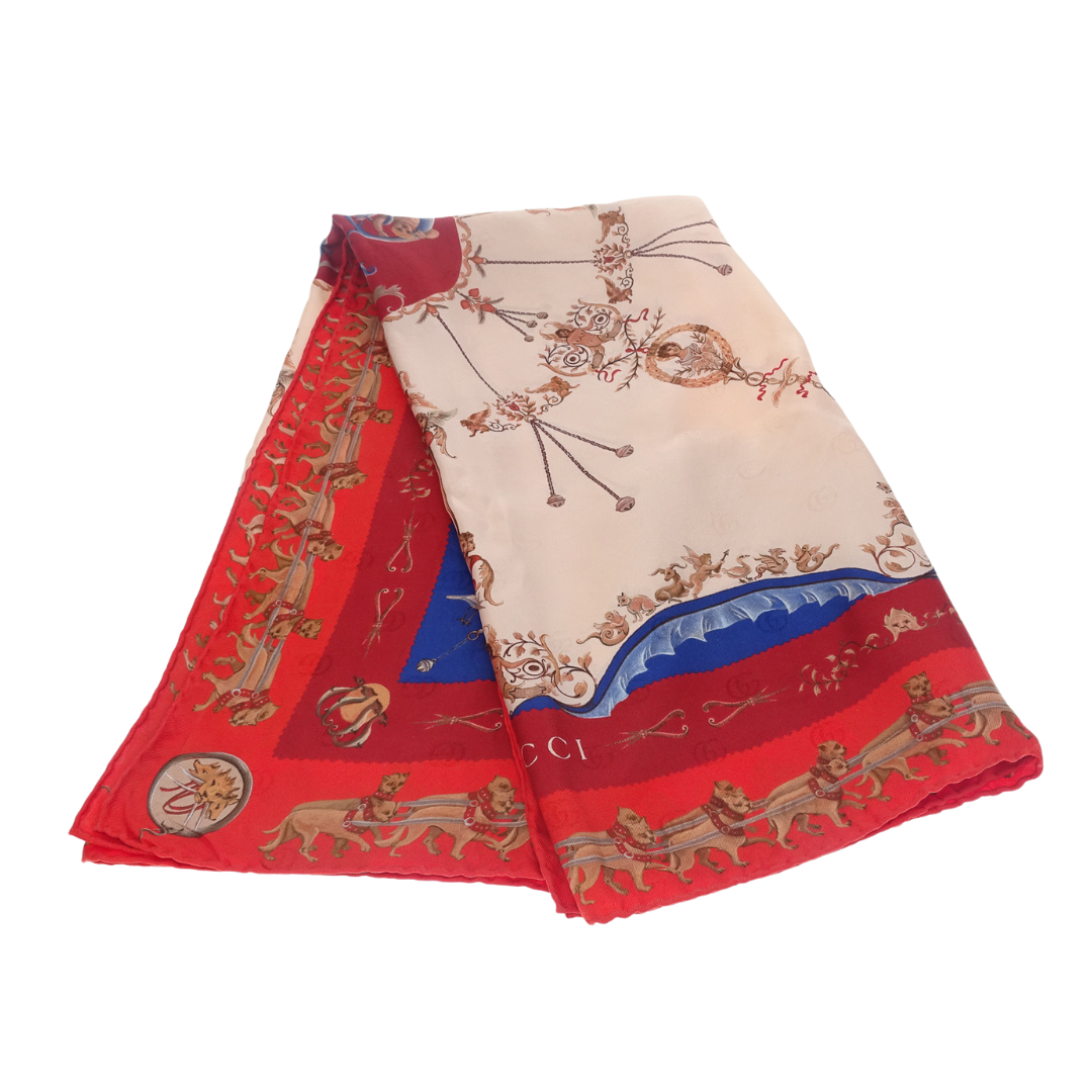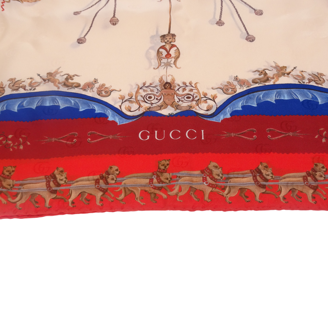 Gucci Red/Navy/Cream Dog and Cherub Scarf