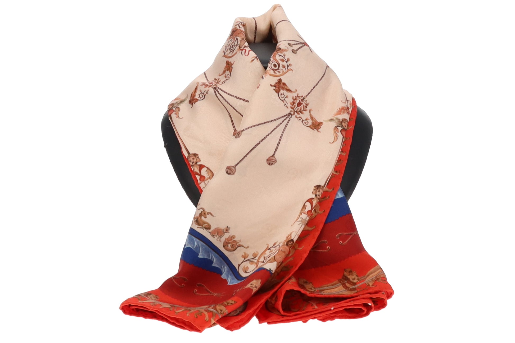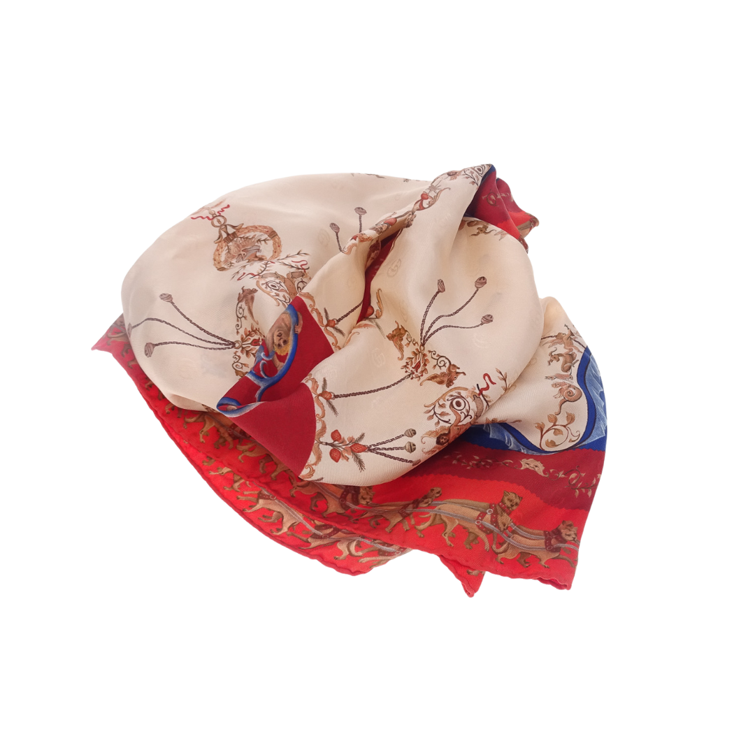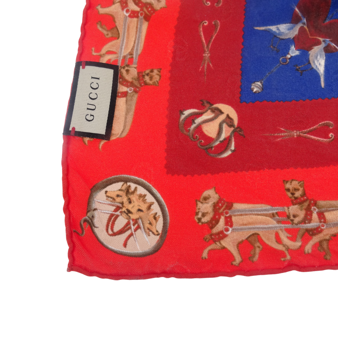 Gucci Red/Navy/Cream Dog and Cherub Scarf