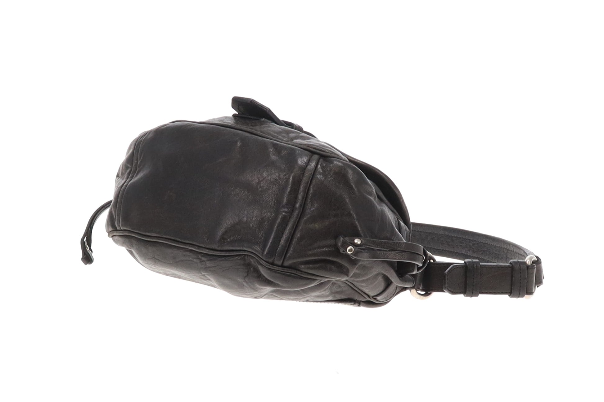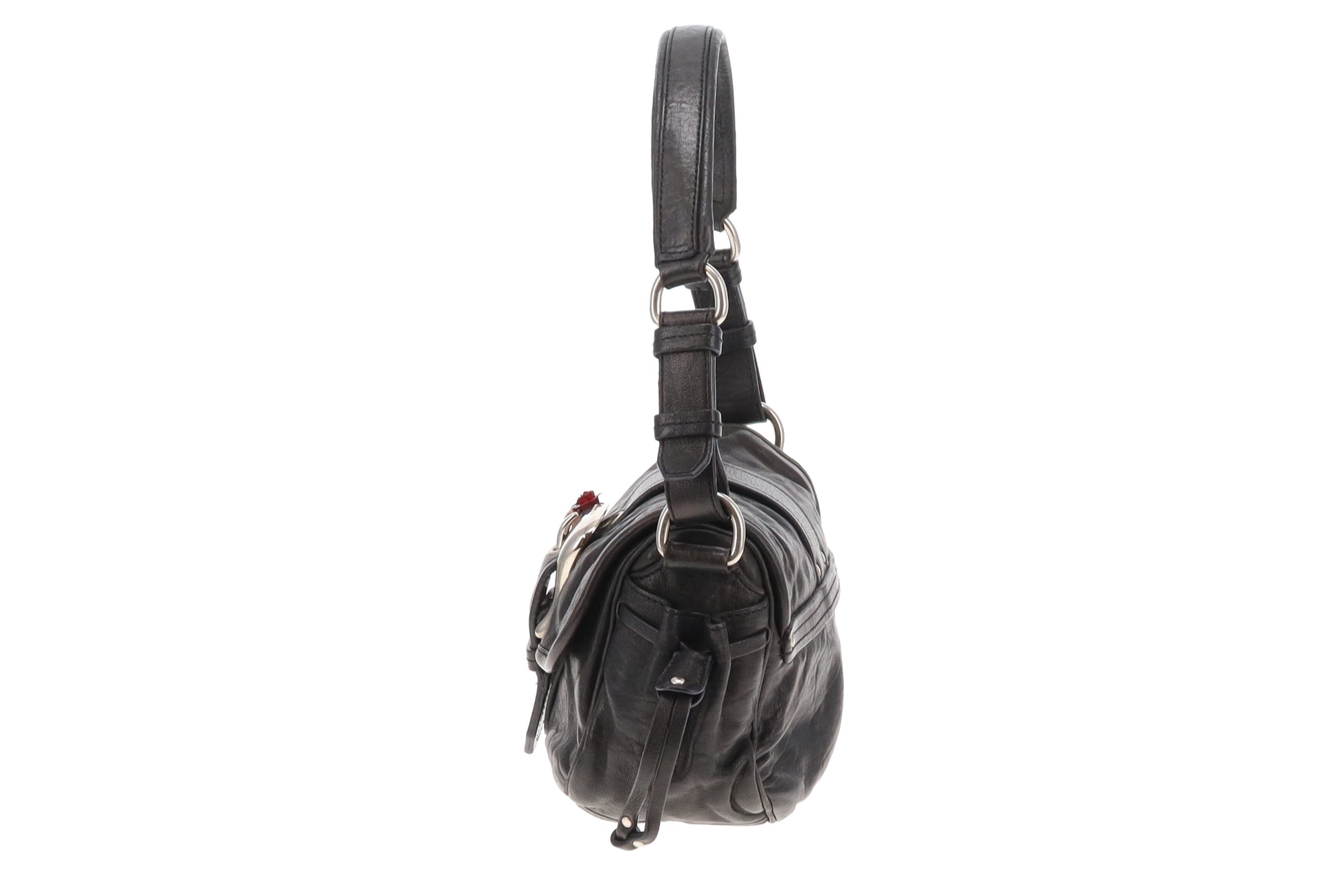 Miu Miu Flap Shoulder Bag Vintage Distressed Black with Rose Detail