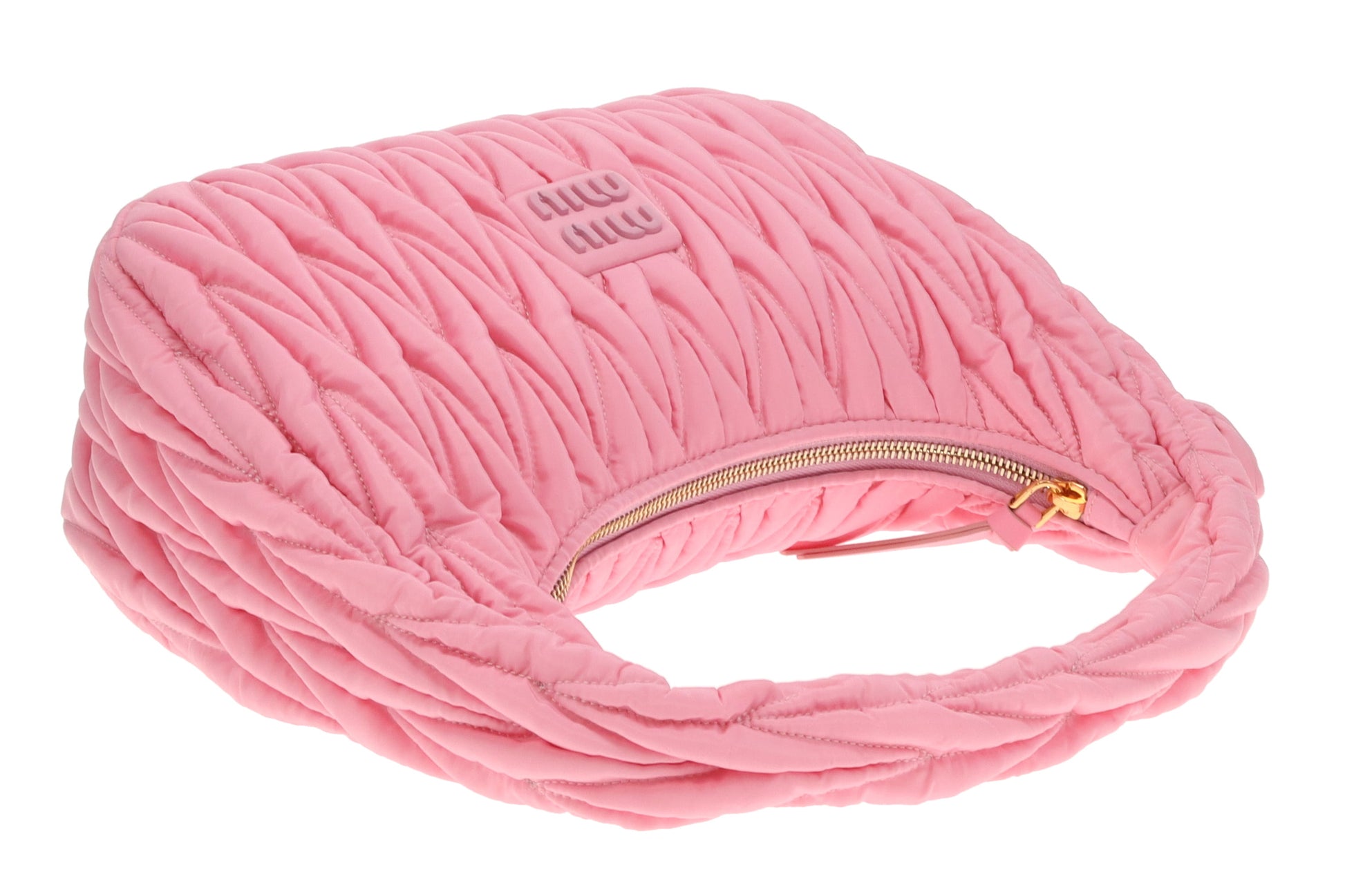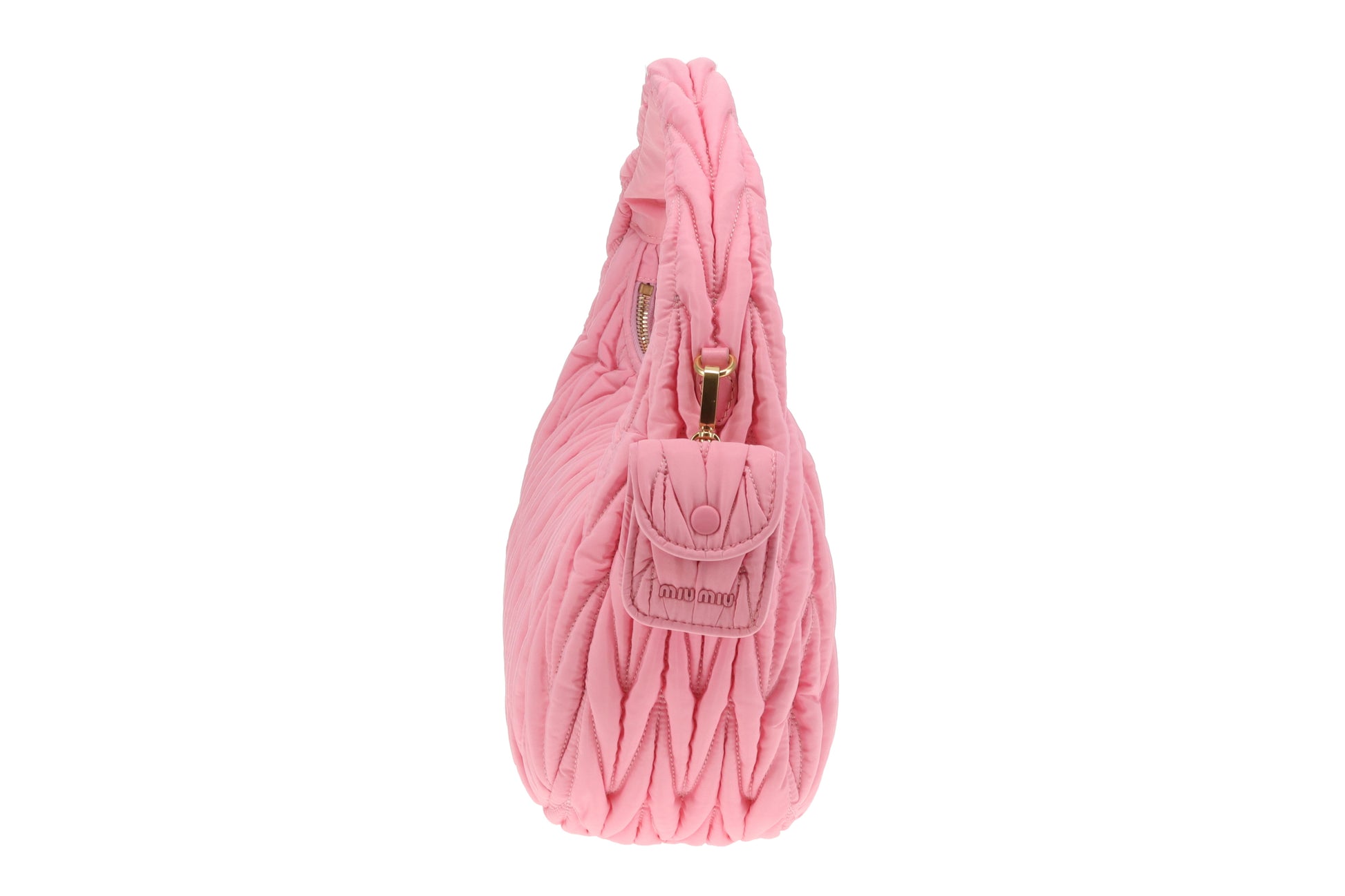 Miu Miu Wander Hobo Bag Pink Matelassé Regenerated Nylon