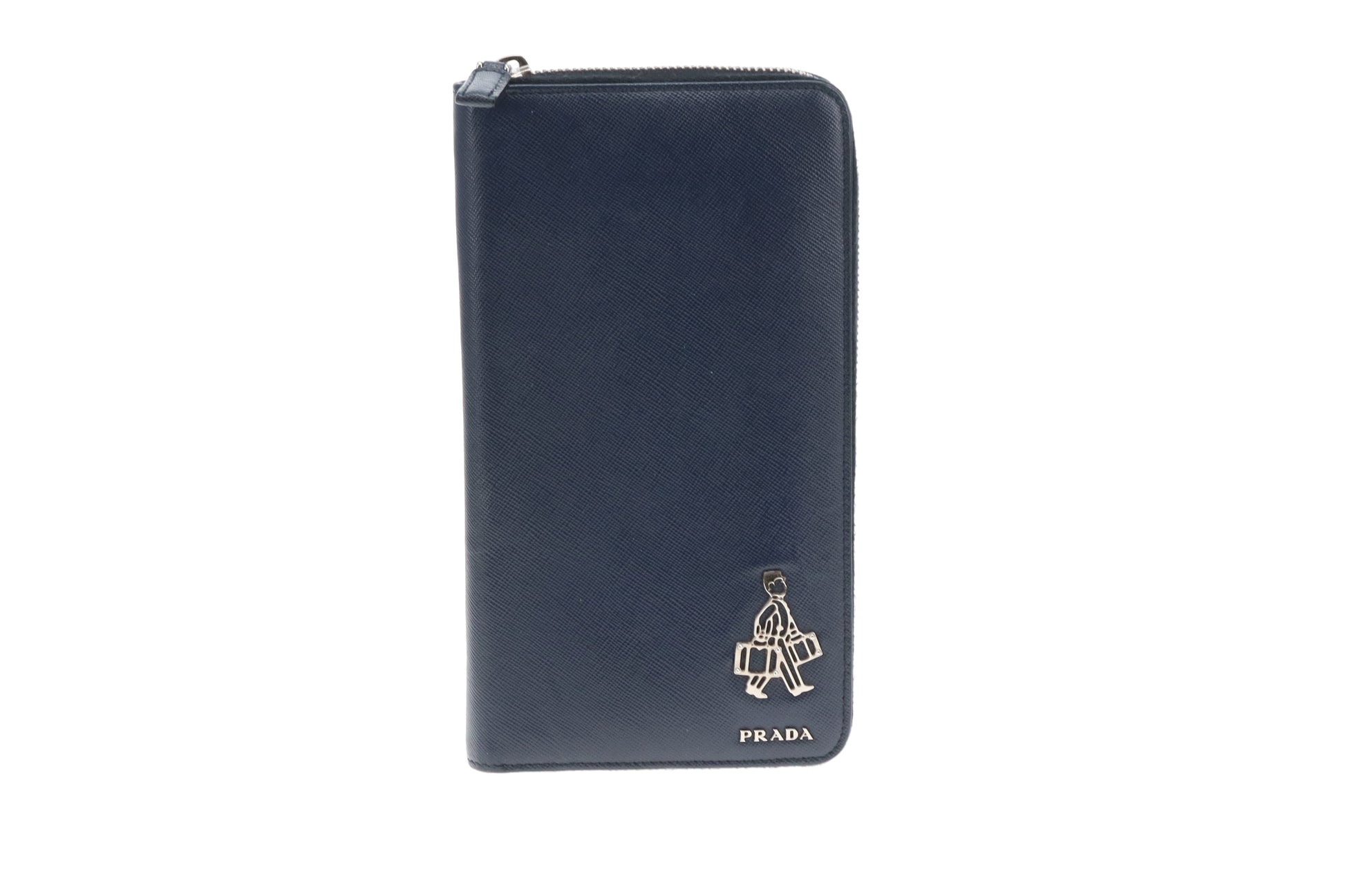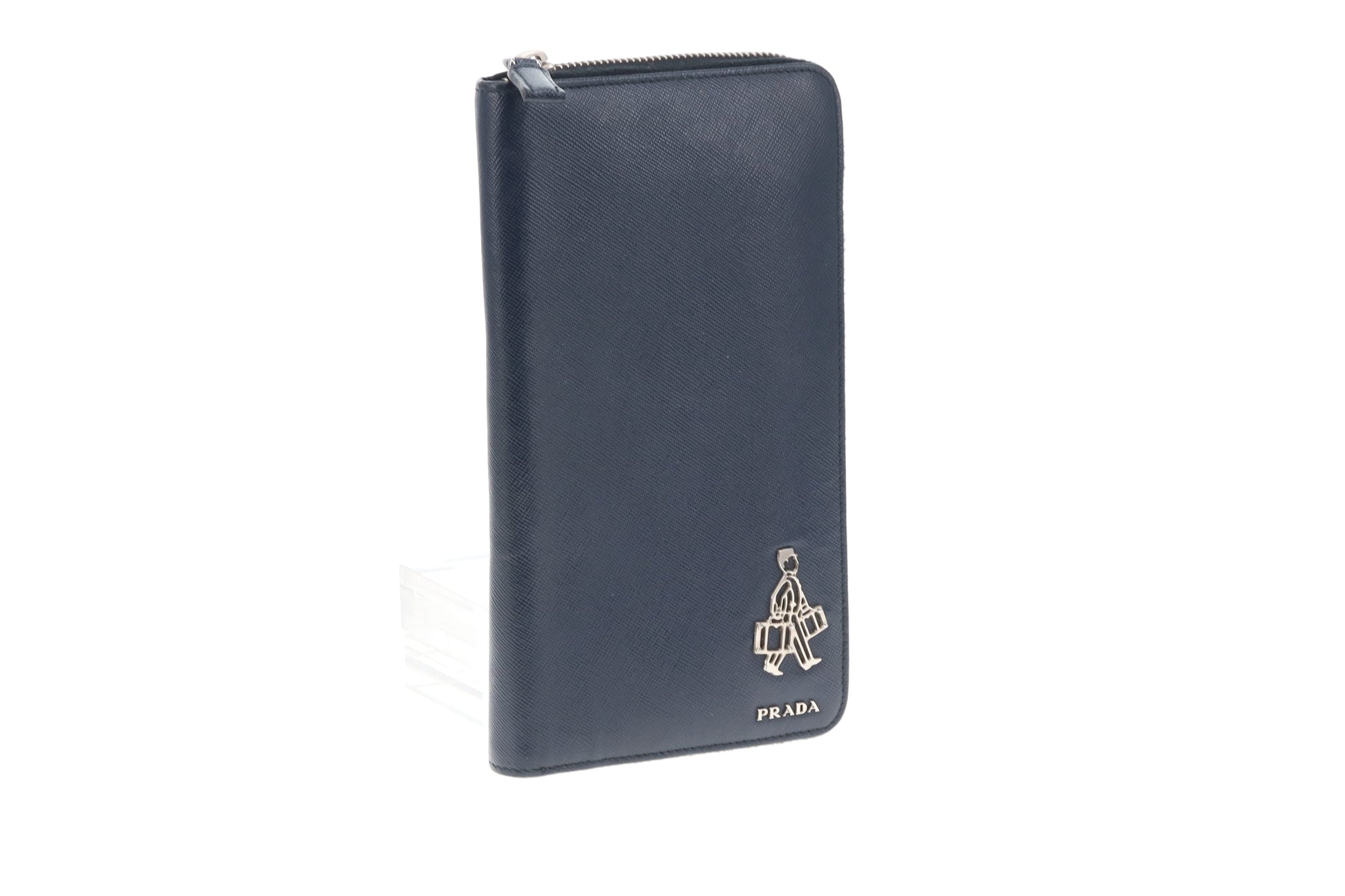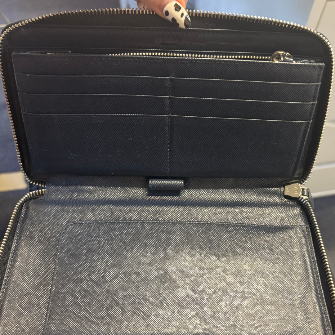 Prada Saffiano Unisex Travel Wallet Navy With Bellboy Feature
