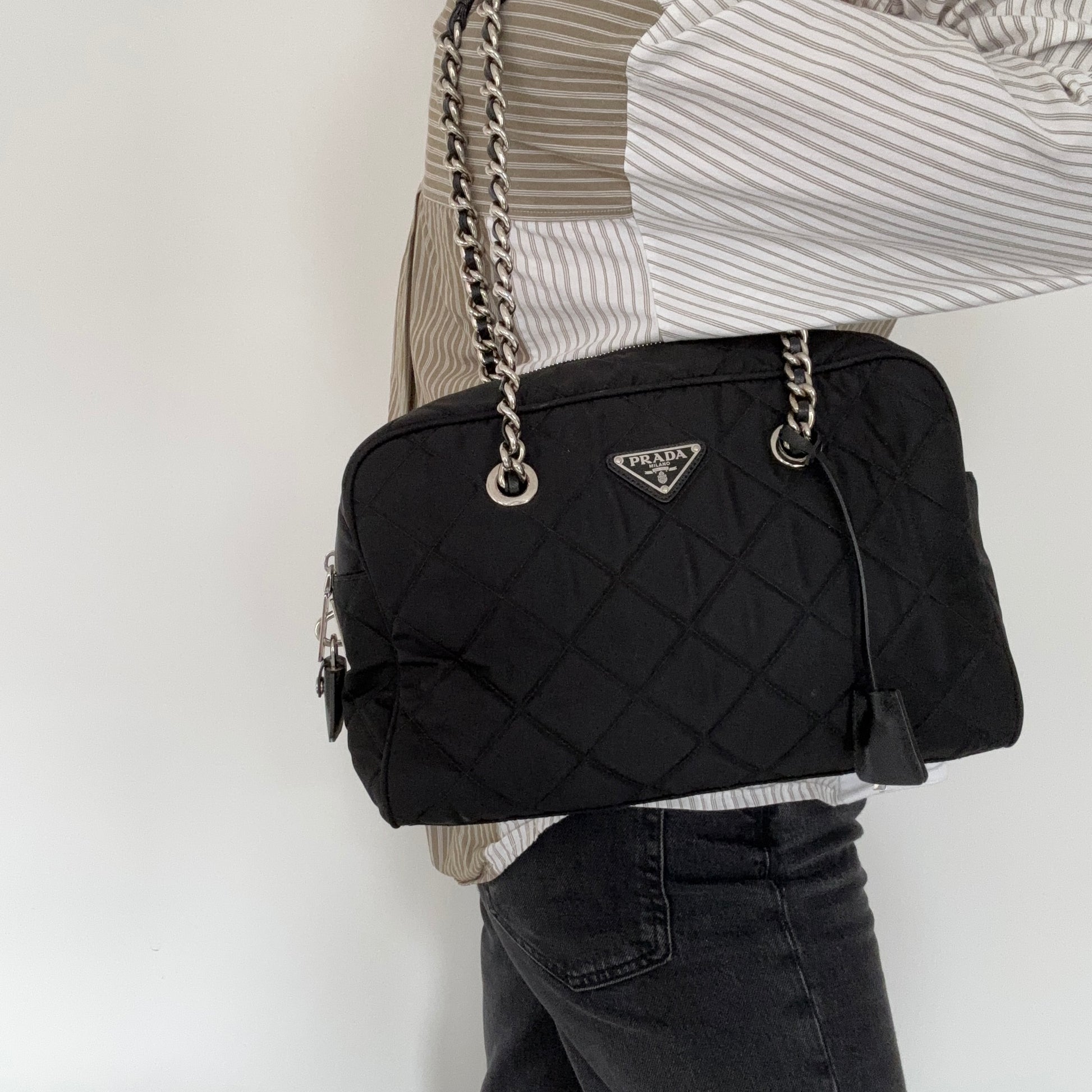 Prada Shoulder Bag Black Quilted Nylon SHW