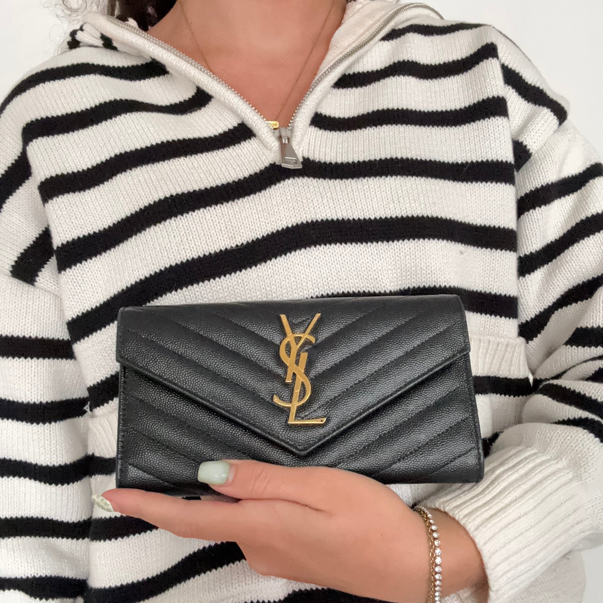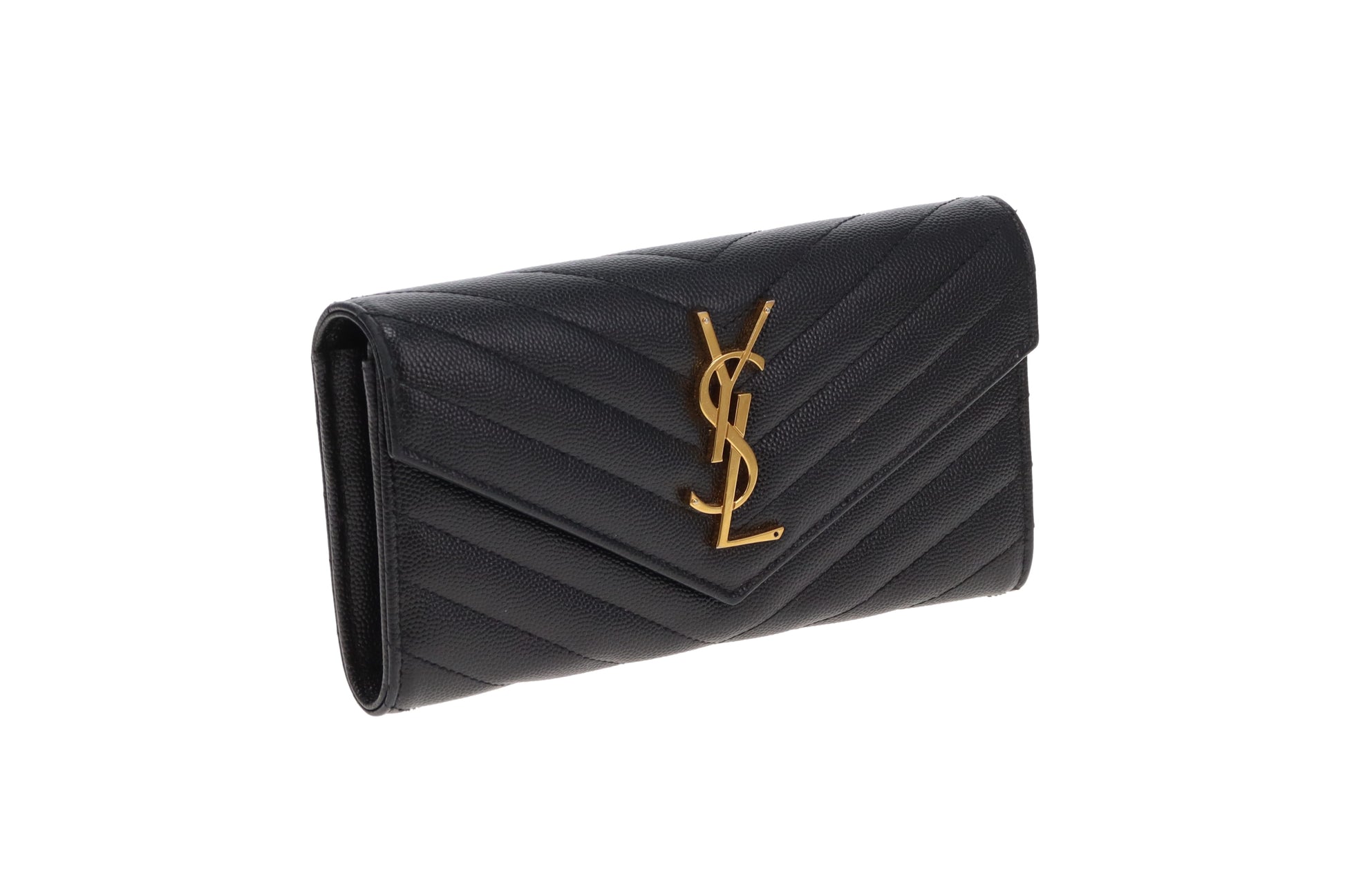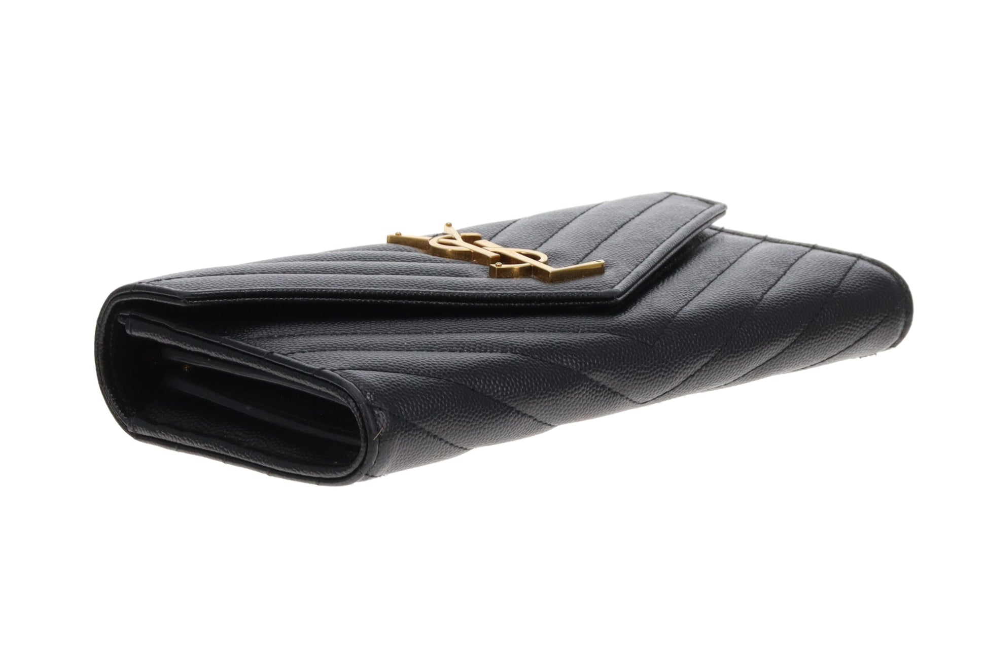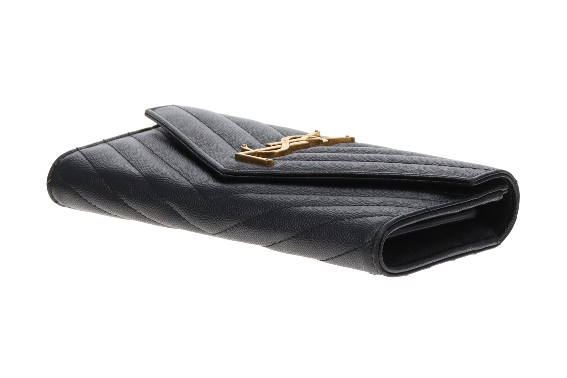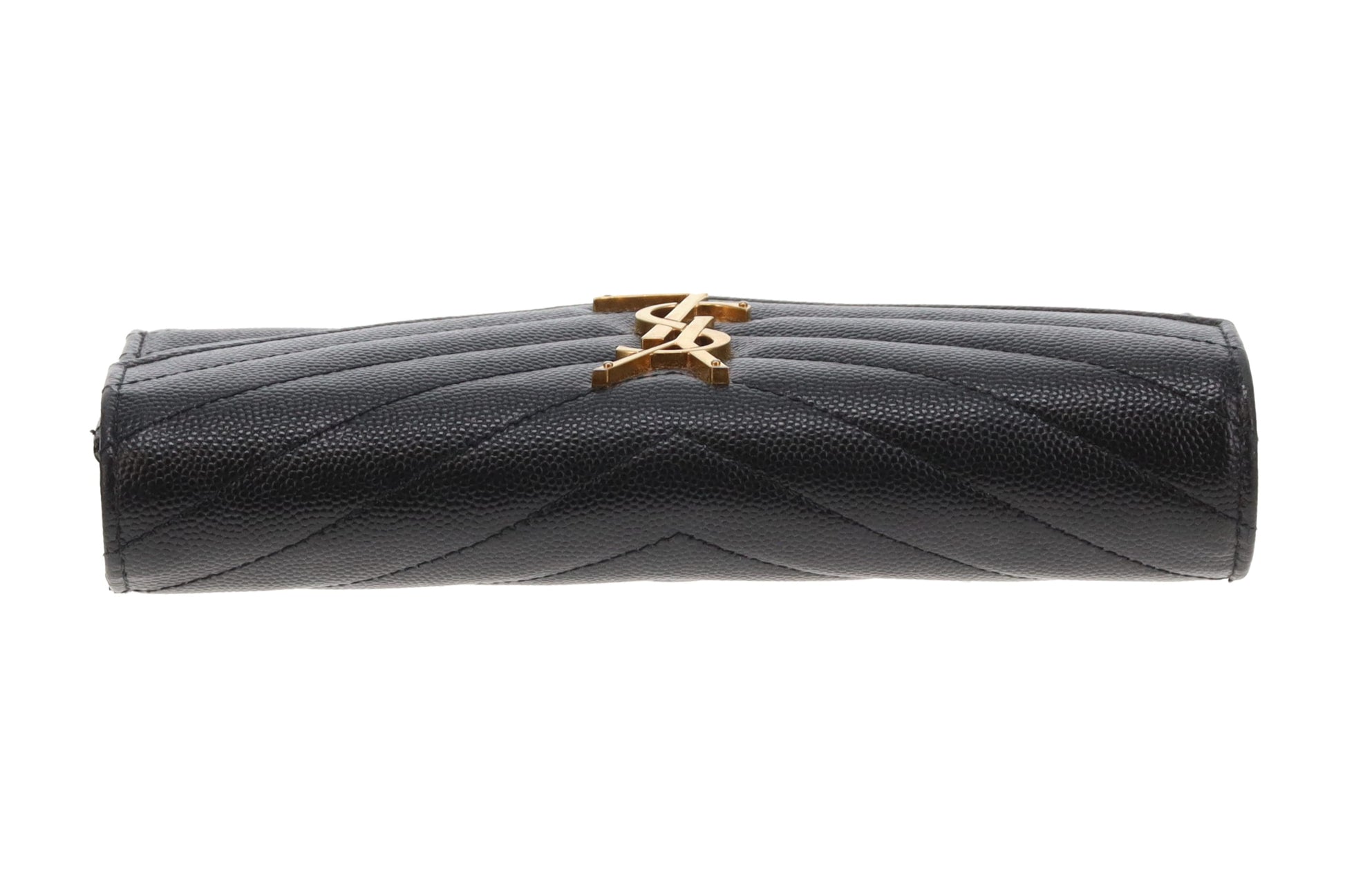 Saint Laurent Envelope Cassandre wallet In Black Grain De Poudre Leather